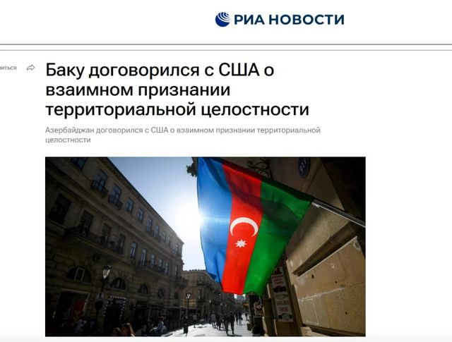 "Azərbaycan və ABŞ Strateji Tərəfdaşlıq Xartiyası çərçivəsində ərazi bütövlüyünün qarşılıqlı tanınması barədə razılığa gəliblər",- deyə "RIA Novosti" yeni imzalanmış sənədə istinadən yazır.