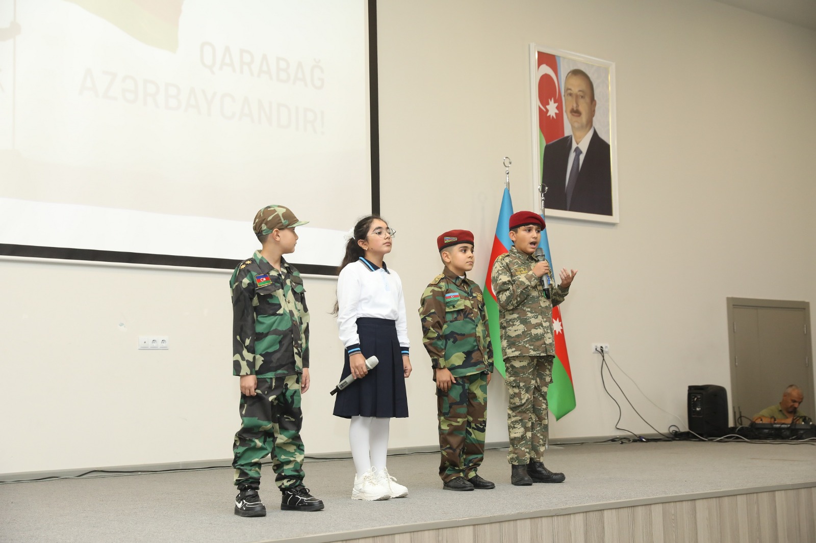 Daha sonra vətənə, qələbəyə və şəhidlərimizə həsr olunmuş bədii hissə təqdim olunmuşdur.