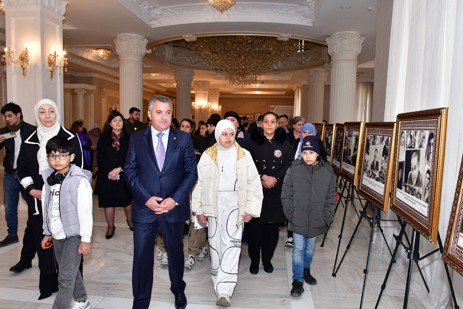 Sonra şəhid ailələri ilə birgə Ulu Öndərin adını daşıyan Mərkəzdə "Qeyd- Sosial Maarifləndirmə” ictimai birliyinin təşkilatçılığı ilə düzənlənən "Heydər Əliyev-Unudulmaz lider” adlı foto xalça sərgisinə baxış keçirilib.