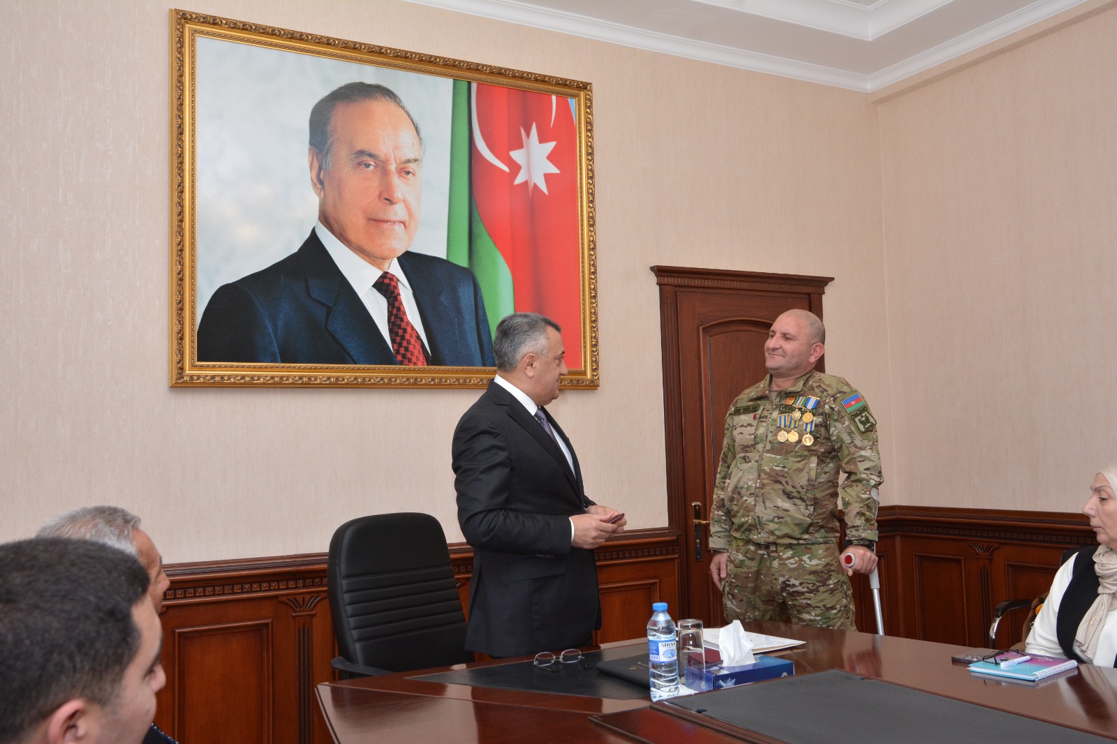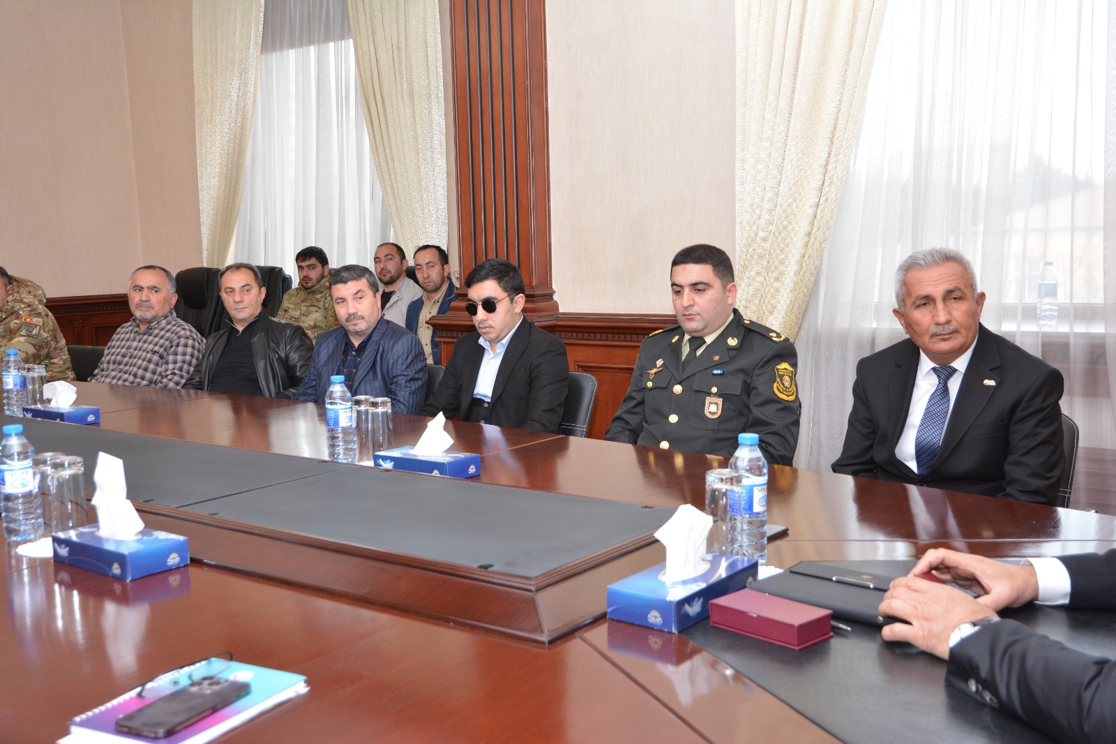 AZXEBER.COM xəbər verir ki, rayon İcra Hakimiyyətinin inzibati binasında baş tutan görüşdə RİH başçısı Abdin Fərzəliyev, Səfərbərlik və Hərbi Xidmətə Çağırış üzrə Dövlət Xidmətinin Abşeron rayon şöbəsinin rəisi vəzifəsini müvəqqəti icra edən - mayor Beytulla Quliyev, Abşeron rayon İcra Hakimiyyəti Yanında İctimai Şuranın sədri, şəhid Elçin Həsənlinin anası Xatirə İsmayılova, Abşeron Rayon Ağsaqqallar Şurasının sədri, şəhid Vidadi Zalovun atası Nizami Zalov, şəhid ailələri və müharibə iştirakçıları iştirak edib.