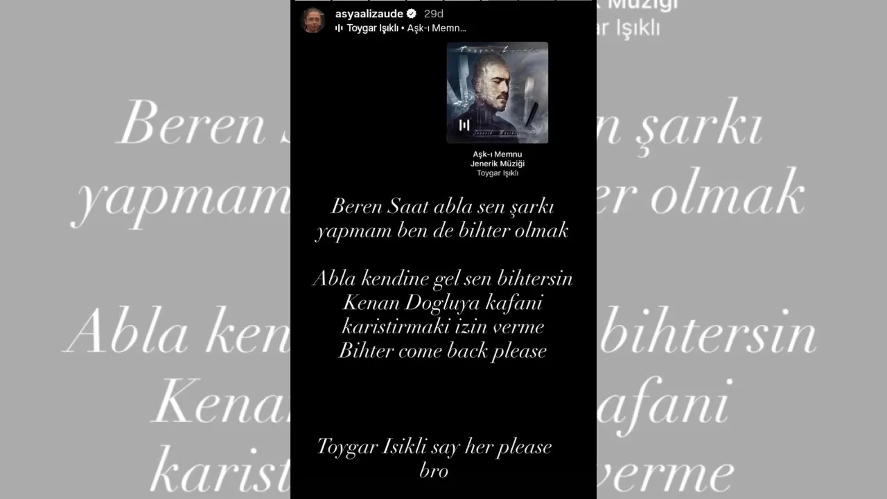 Əslən azərbaycanlı olan və Türkiyədə reper kimi tanınan Asya Alizade Beren Saatin müğənniliyə başlamasını tənqid edib.