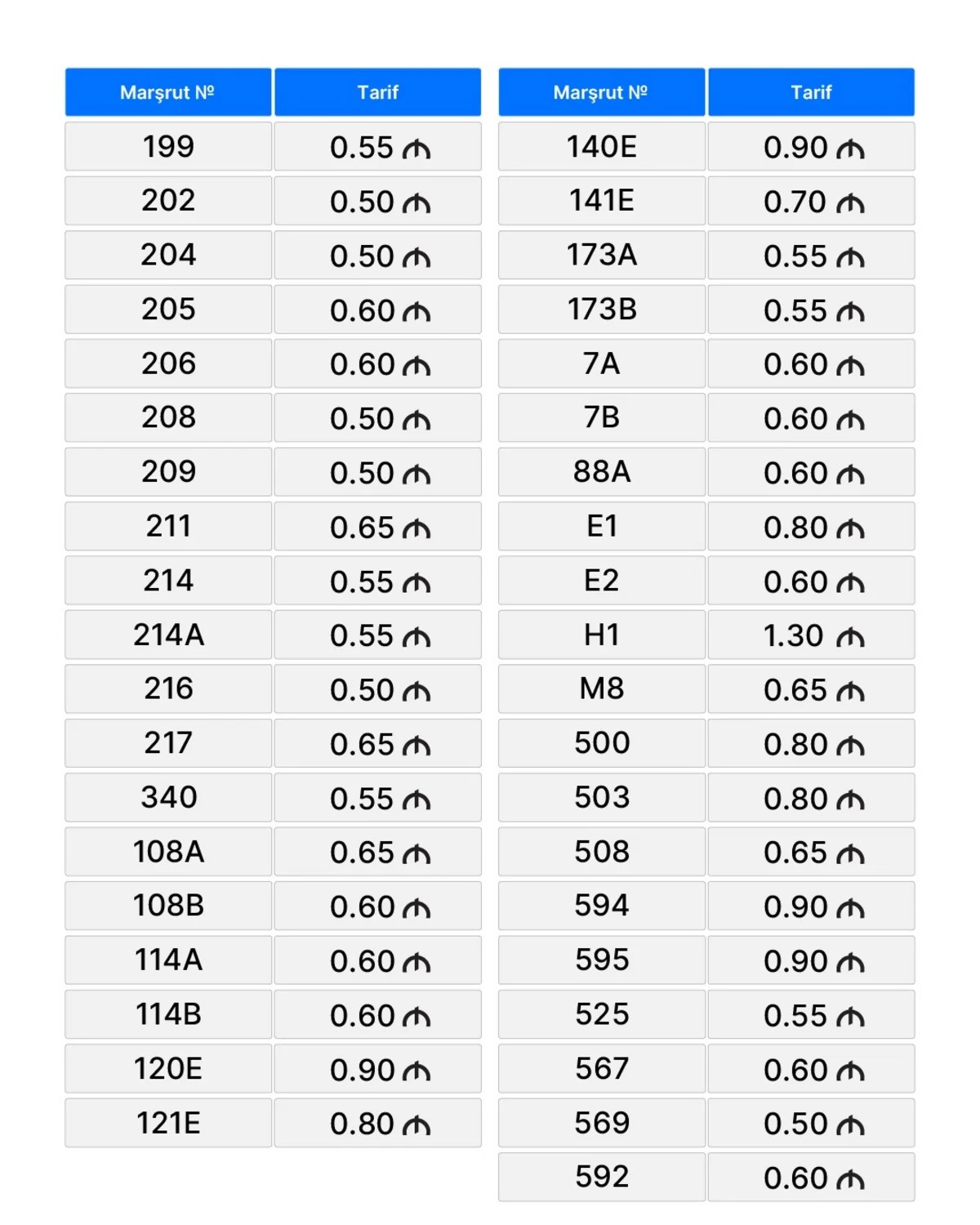 Məlumata əsasən, tarif dəyişikliyi yalnız nağdsız ödəniş sisteminin tətbiq edildiyi və müasir standartlara cavab verən avtobusların istismar edildiyi marşrutlarda həyata keçirilir. Müasir standartlar dedikdə elektrikli, sıxılmış təbii qazla (CNG) işləyən və 2025-ci il istehsalı olan dizel mühərrikli avtobuslar nəzərdə tutulur. Bakıda bu qayda yalnız elektrikli və CNG texnologiyası ilə işləyən avtobuslara şamil edilir.