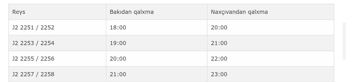 AZAL-ın 9 mart 2026-cı il tarixinə Bakı-Naxçıvan-Bakı marşrutu üzrə planlaşdırılmış uçuş cədvəli: