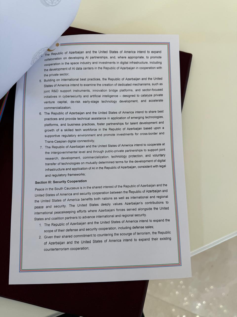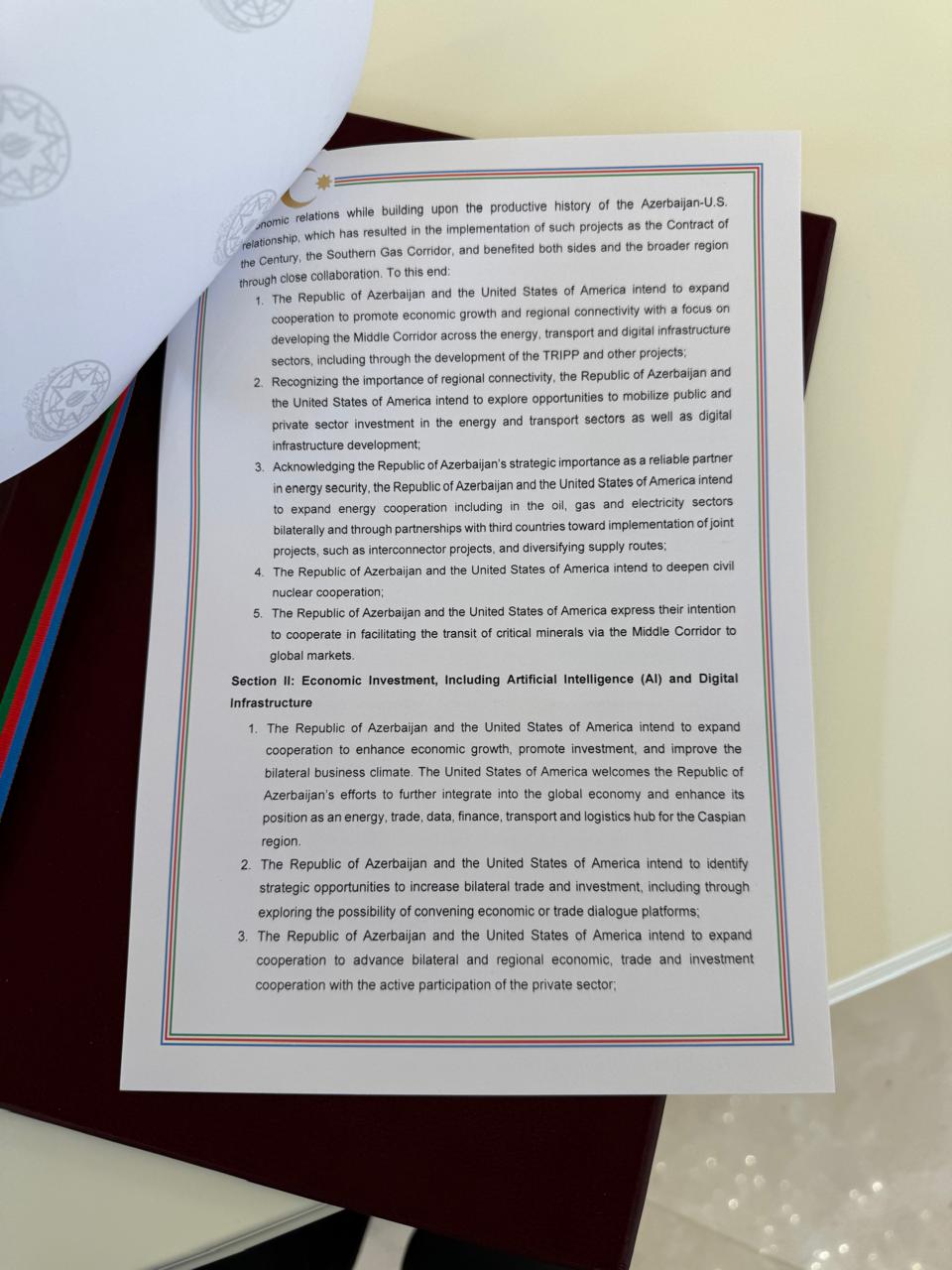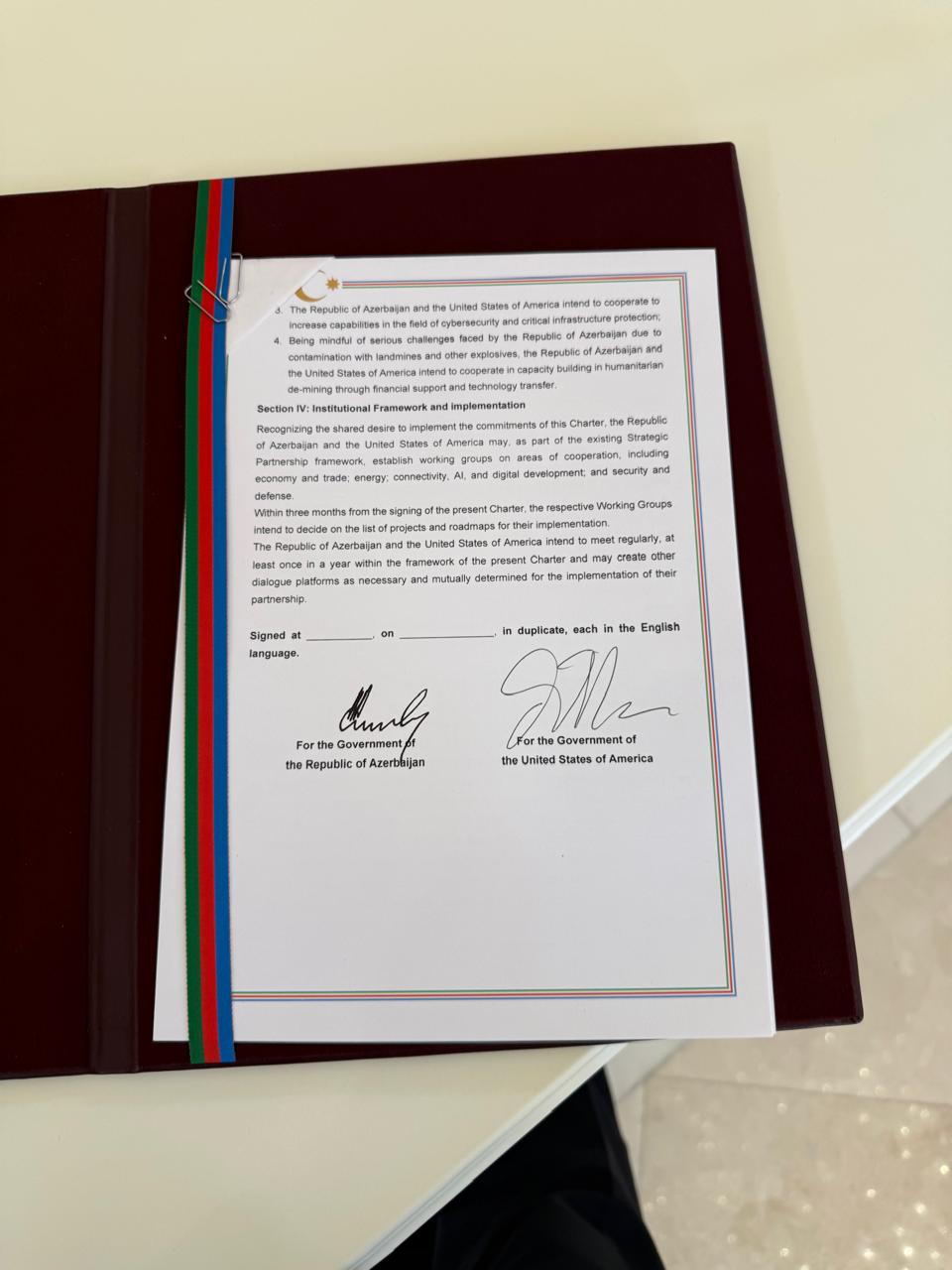AZXEBER.COM xəbər verir ki, sənədi Azərbaycan Respublikasının Prezidenti İlham Əliyev və Amerika Birləşmiş Ştatlarının Vitse-prezidenti Ceyms Devid Vens imzalayıblar.