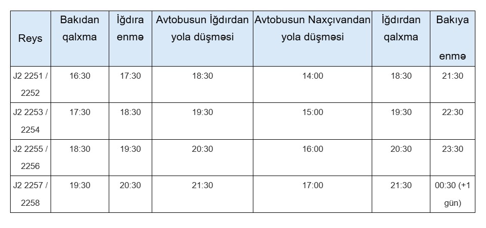 Bakı-İğdır-Bakı marşrutu üzrə uçuş CƏDVƏLİ