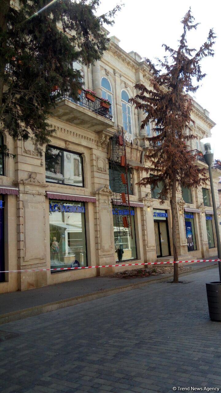 Bakının mərkəzində binanın eyvanı uçuldu - FOTO