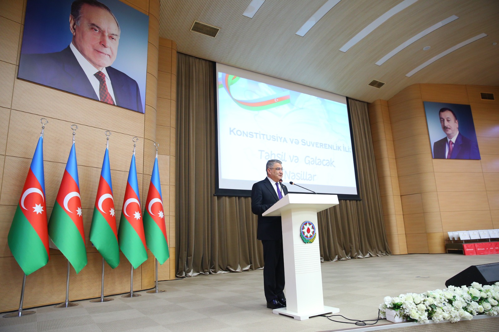 Yekun nitqi ilə çıxış edən Yeni Azərbaycan Partiyası Binəqədi rayon təşkilatının sədri Vüsar İsmayılov müəllimləri və gəncləri təbrik edərək bildirdi ki, "Təhsil millətin gələcəyidir” ifadəsini milli şüar səviyyəsinə yüksəldən ümummilli lider Heydər Əliyev respublikanın gələcək inkişafının məhz təhsillə bağlı olduğunu vurğulamış və rəhbərlik etdiyi bütün dövrlərdə Azərbaycanda təhsilin inkişafına xüsusi qayğı ilə yanaşmışdır. Həmin qayğı bu gün də Azərbaycan Respublikasının Prezidenti cənab İlham Əliyev tərəfindən davam etməkdədir. Gənc nəslə hər zaman xüsusi diqqət göstərilir, onların ölkənin ictimai-siyasi, sosial-iqtisadi həyatında fəal iştirakı üçün geniş imkanlar yaradılır. "Hər bir ölkənin bu günü və gələcəyi təhsillə bilavasitə bağlıdır”, - deyən Azərbaycan Respublikasının Prezidenti cənab İlham Əliyev təhsili ümumi inkişafın əsas istiqaməti kimi müəyyənləşdirib.