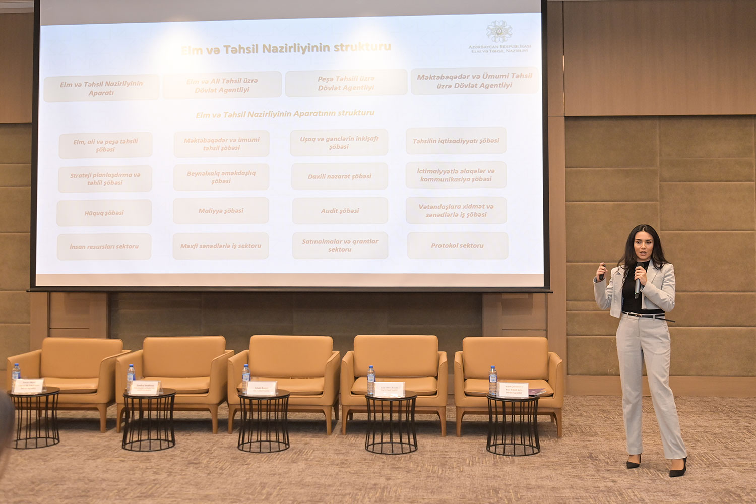 Daha sonra təqdimatla çıxış edən Elm və Təhsil Nazirliyinin Strateji planlaşdırma və təhlil şöbəsinin müdiri Leyla Xəlilova Rzazadə "Azərbaycan Respublikasında 2022–2026-cı illərdə sosial-iqtisadi inkişaf strategiyası” çərçivəsində elm və təhsil sahəsində görülən işlər, əldə olunan nailiyyətlər və qarşıdakı dövr üçün müəyyənləşdirilən əsas hədəflər barədə ətraflı məlumat verib. Şöbə müdiri elm və təhsil sahəsində aparılan proseslərdə ictimai dəstəyin və düzgün maarifləndirmənin önəmini vurğulayıb.