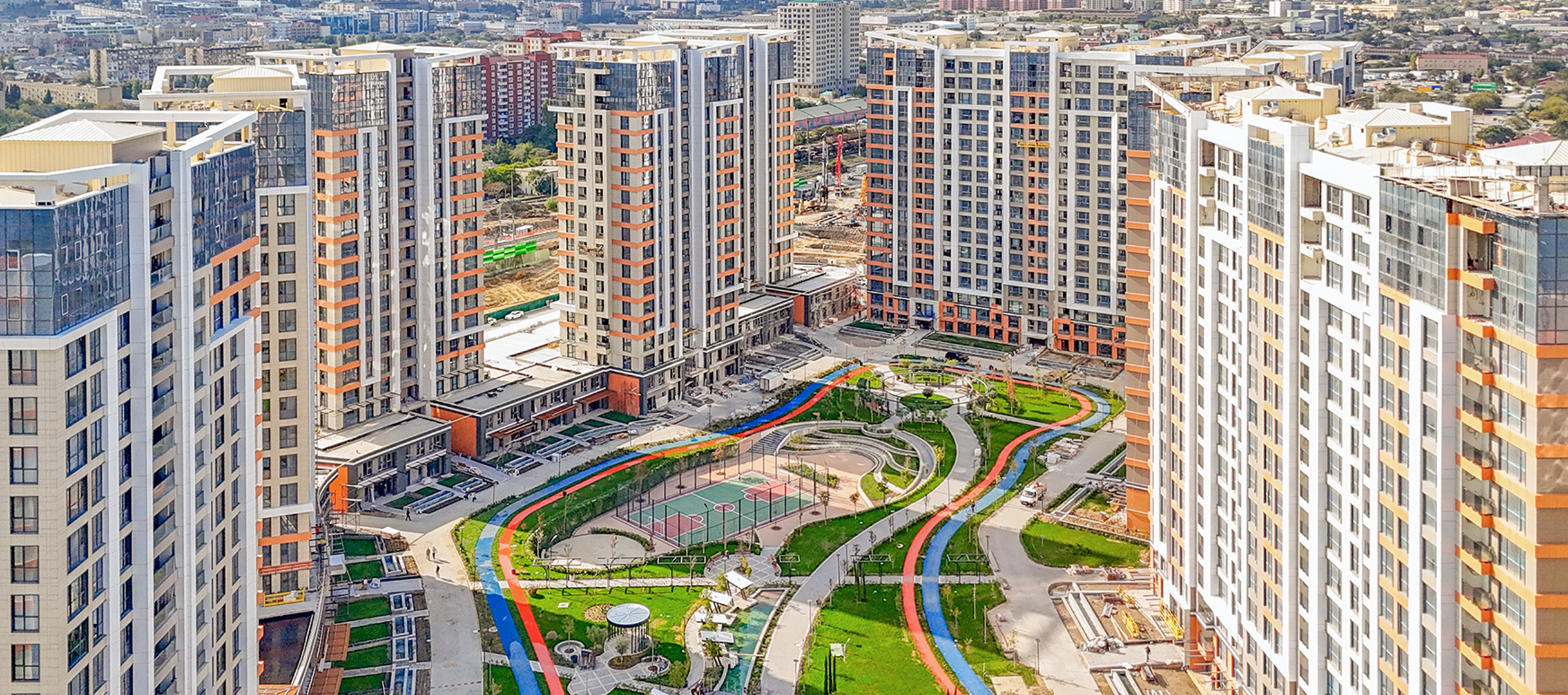 Yeni nəsil səs və istilik izolyasiya sistemi enerjiyə qənaəti artıraraq qışda qaza olan tələbatı təxminən 2 dəfə azaldır. Kompleks daxilində 2 məktəb (özəl və dövlət), 2 bağça, böyük əyləncə mərkəzi, müasir klinika, "Mall”, fitness, qapalı hovuz, açıq hava kinoteatrı və 40-dan çox ticarət və iaşə obyektinin fəaliyyət göstərəcək olması sakinlərin gündəlik ehtiyaclarını bir ünvanda təmin edir. Parkinq problemi də tam həll olunub, həm açıq, həm də qapalı avtodayanacaq mövcuddur.