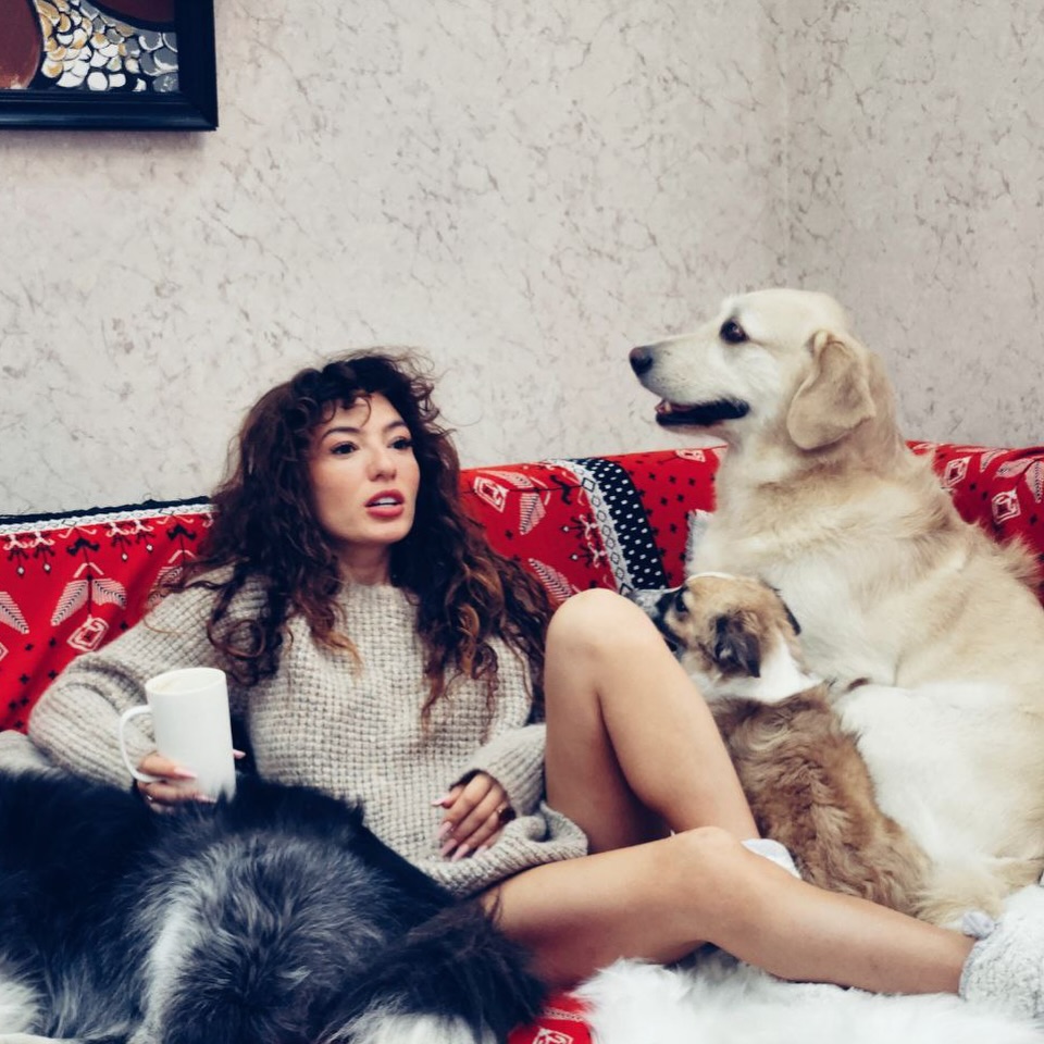 Dilarə Kazımova evində itləri ilə - FOTOLAR