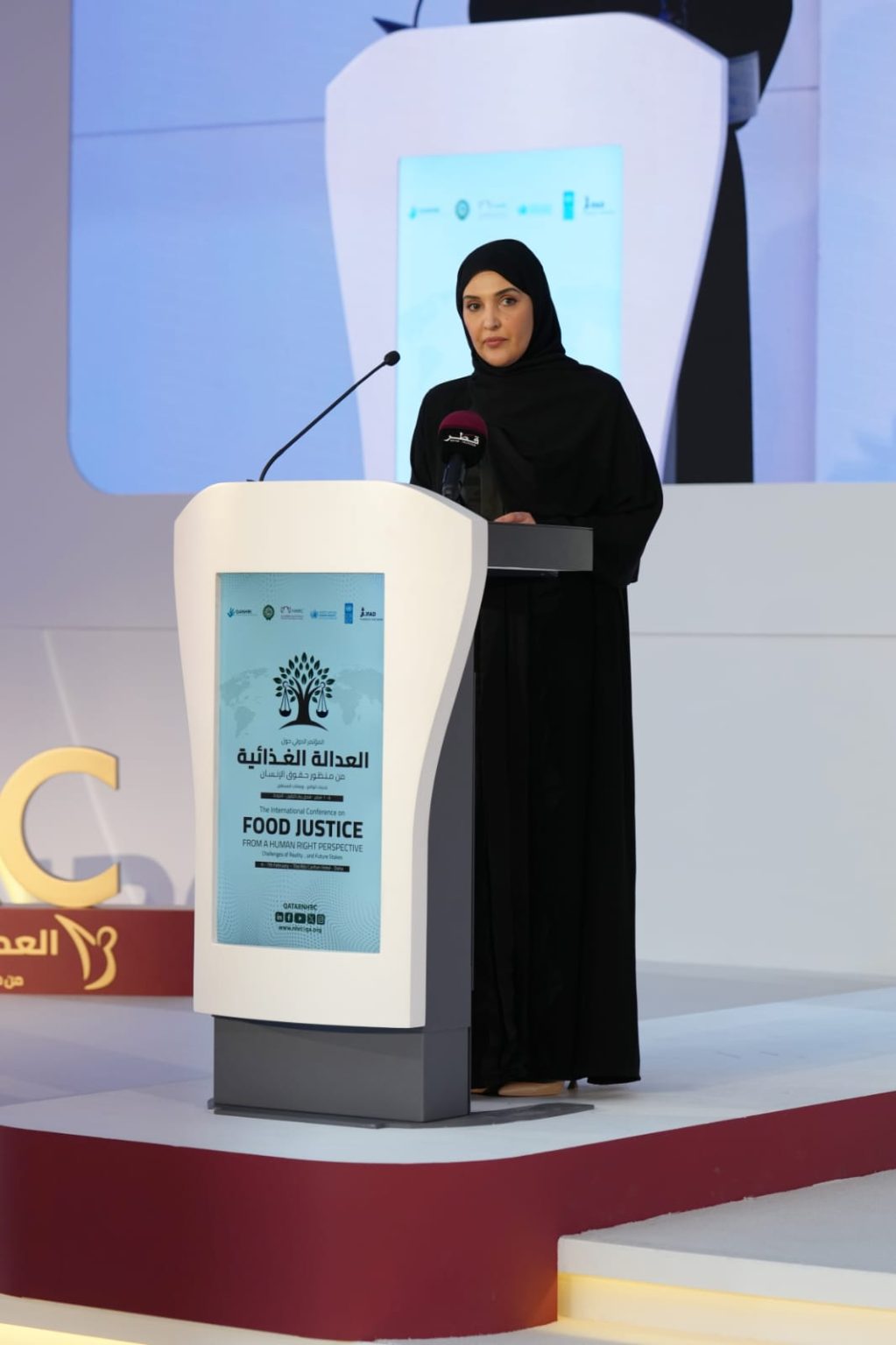 Konfranda çıxış edən Qətər Milli İnsan Haqları Komitəsinin prezidenti Məryəm bint Abdullah Al Attiya konfrans iştirakçılarını salamlayaraq, dünyada insan haqlarının müdafiəsi sahəsində birgə fəaliyyətin zəruriliyinə diqqət çəkib, qlobal ərzaq böhranının müzakirəsinə və qida ədalətinə həsr olunmuş bu konfransın əsas amalının dünyadakı bütün insanlara layiqli həyat təmin etmək olduğunu bildirib.