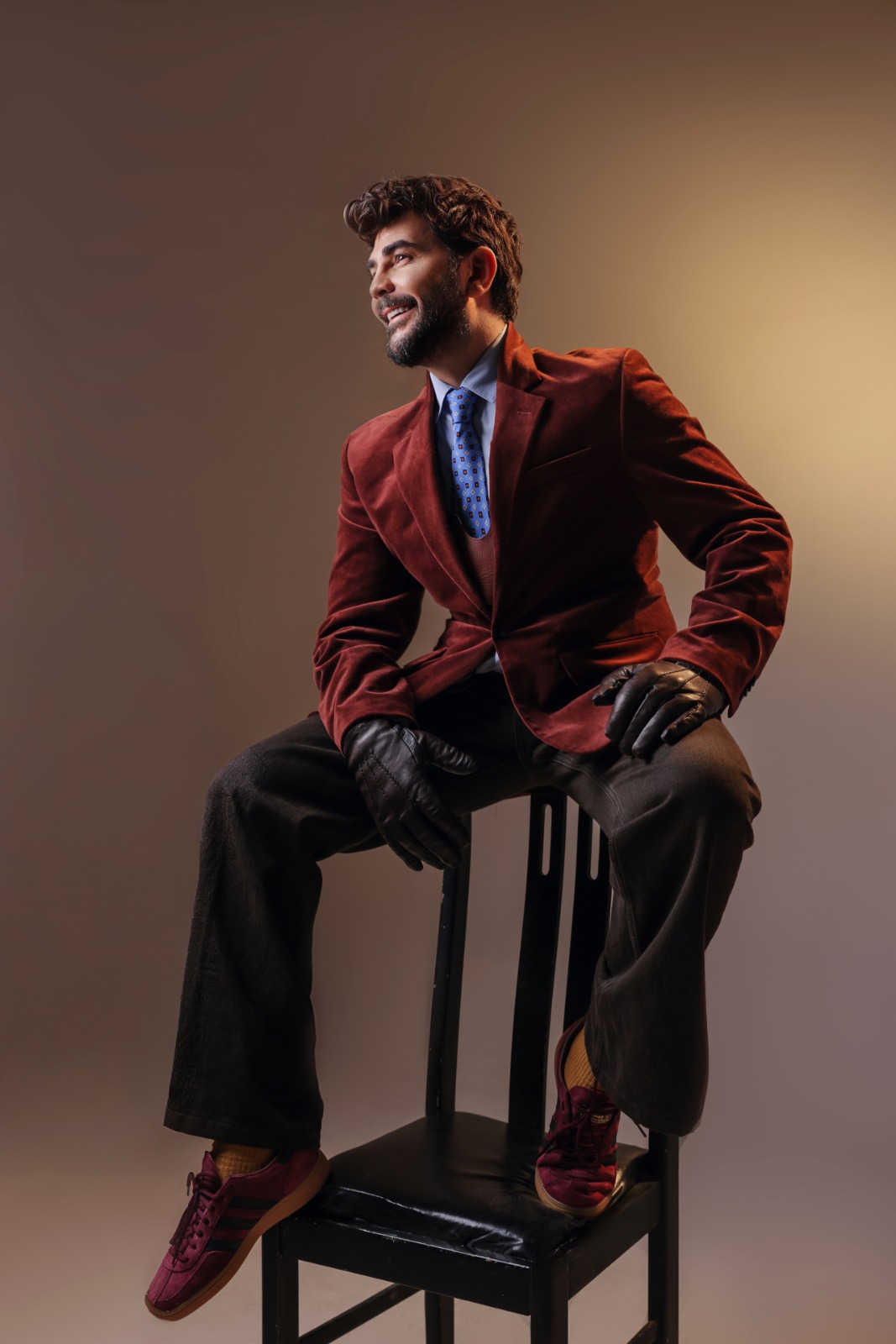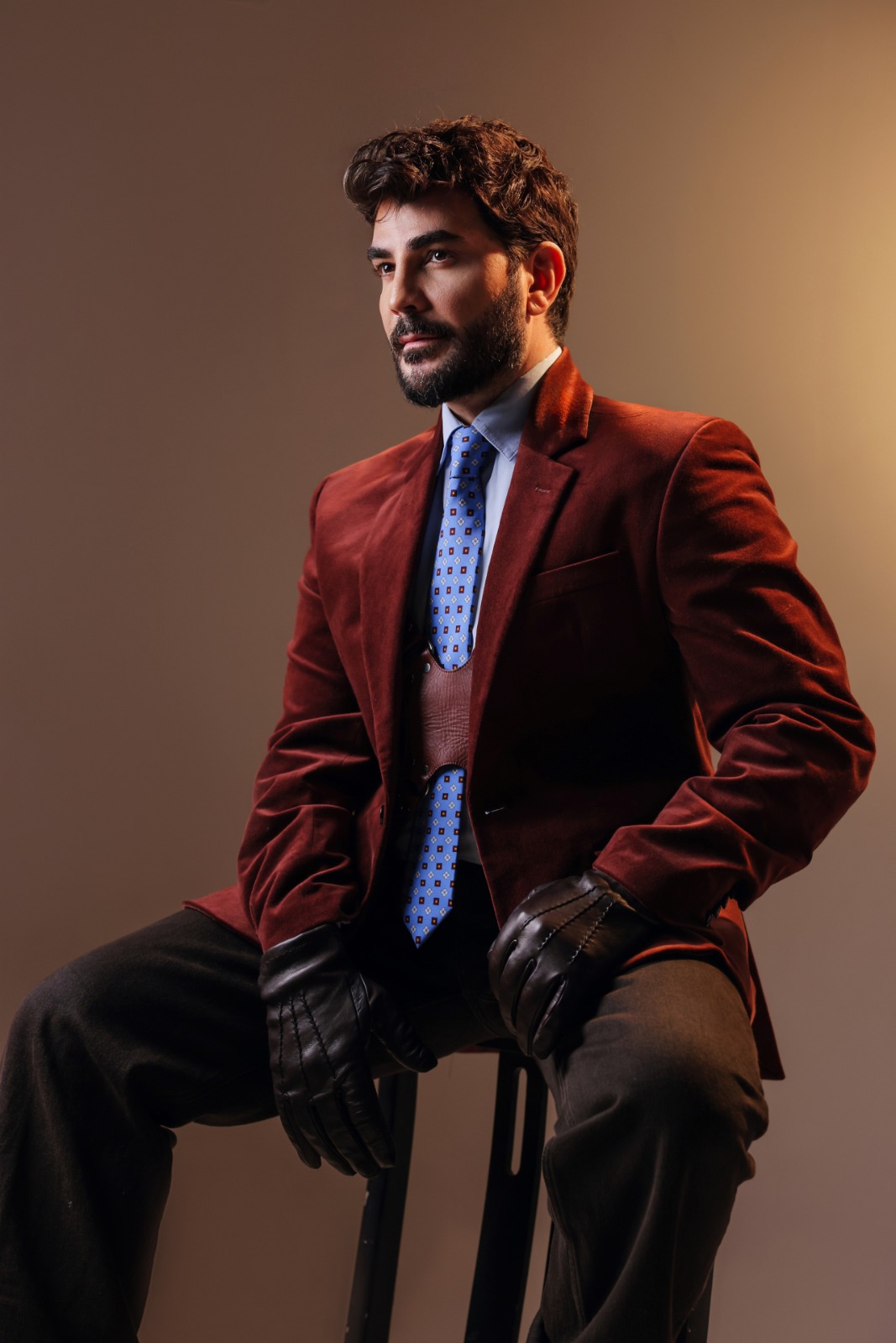 Bordo tonlarda klassik kostyum, qara dəri əlcəklər və zərif detallarla tamamlanan obrazda fotoqraf Elgün Zamanın kamerası önünə keçən sənətçinin yeni stili üzərində isə stilist Elnur Həsənov çalışıb.