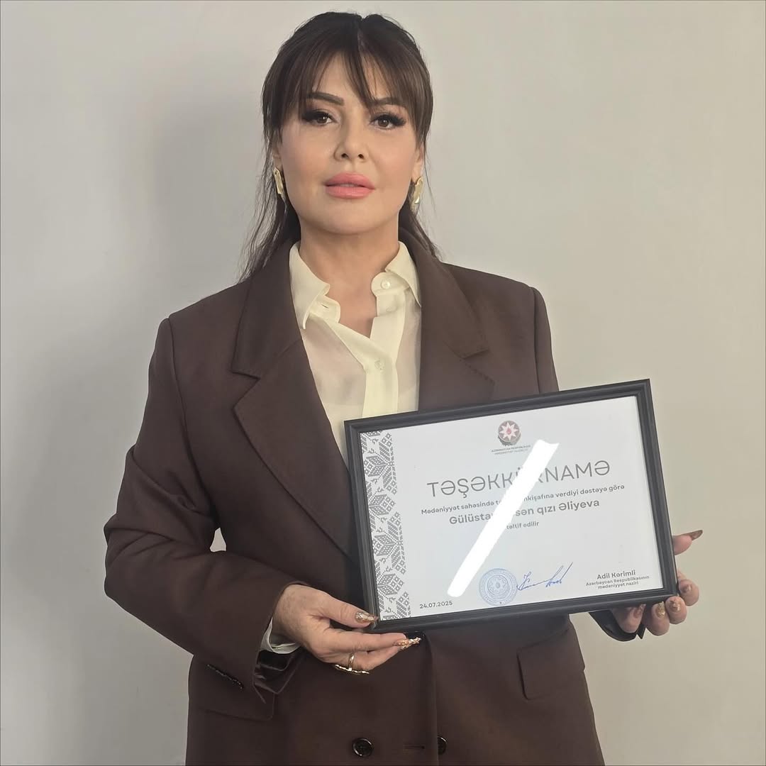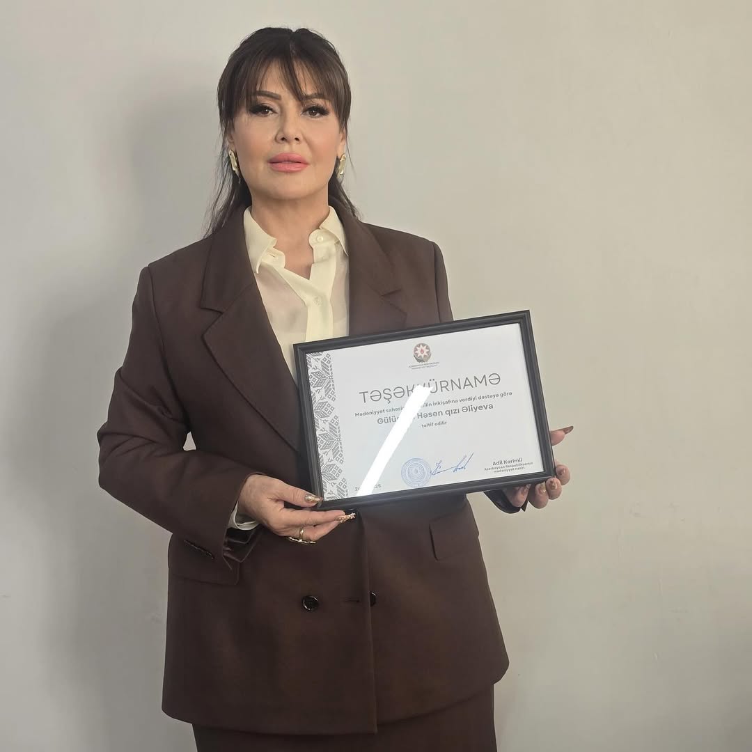 "Təhsilin inkişafına göstərdiyim dəstəyə görə, Azərbaycan Respublikasının Mədəniyyət Naziri Adil Kərimli tərəfindən təşəkkürnamə ilə təltif edildim" deyə Əməkdar artist paylaşımında qeyd edib.