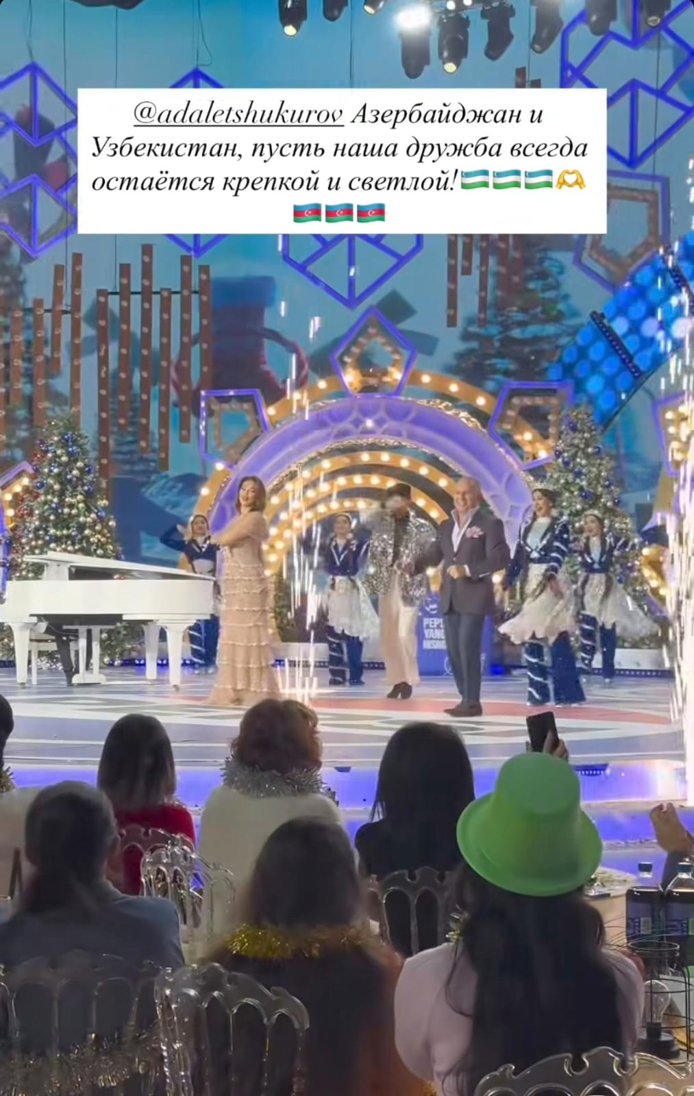 Görüntüləri sosial mediada yayımlayan özbəkistanlı müğənni "Qoy bizim ölkələrimizin dostluğu möhkəm və əbədi olsun" sözlərini qeyd edib.