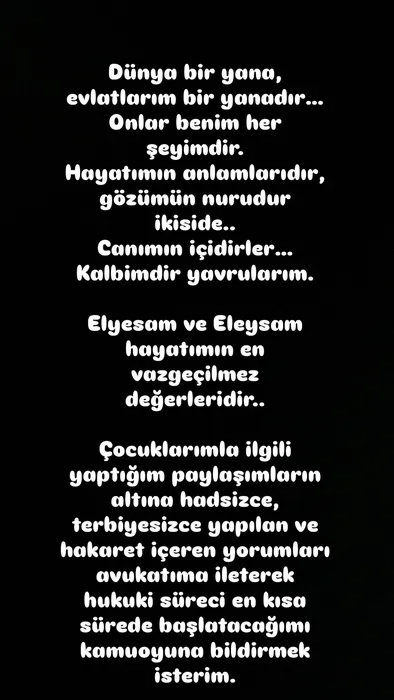 "Instagram" hesabında açıqlama verən Emrah "Uşaqlarım mənim qırmızı xəttimdir" deyərək onların qorunmasının onun üçün hər şeydən üstün olduğunu vurğulayıb.