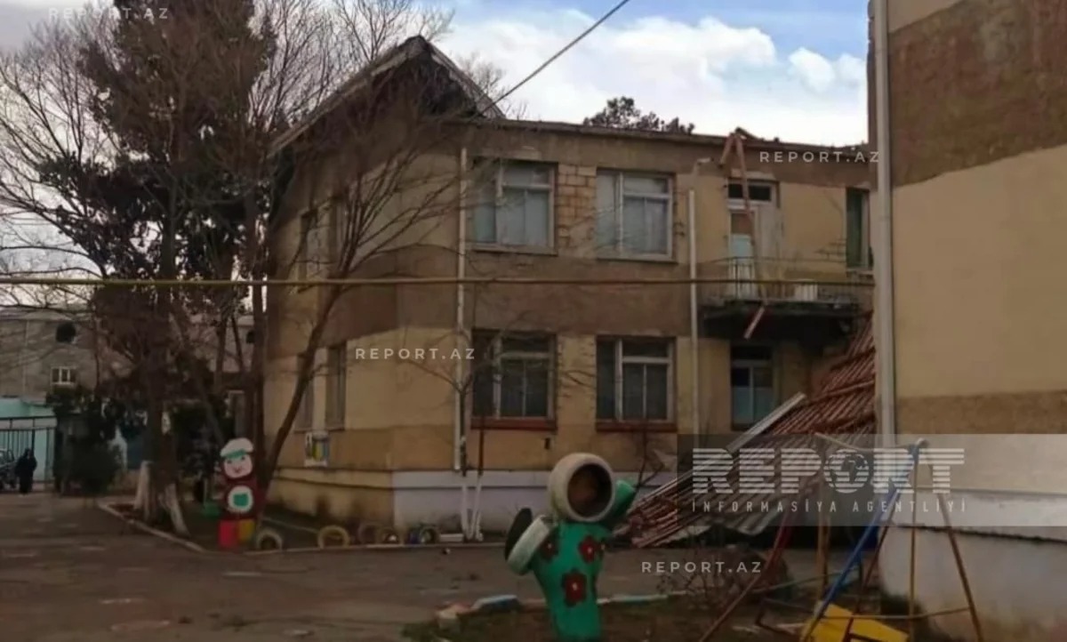 Gəncədə güclü külək uşaq bağçasının dam örtüyünü uçurub