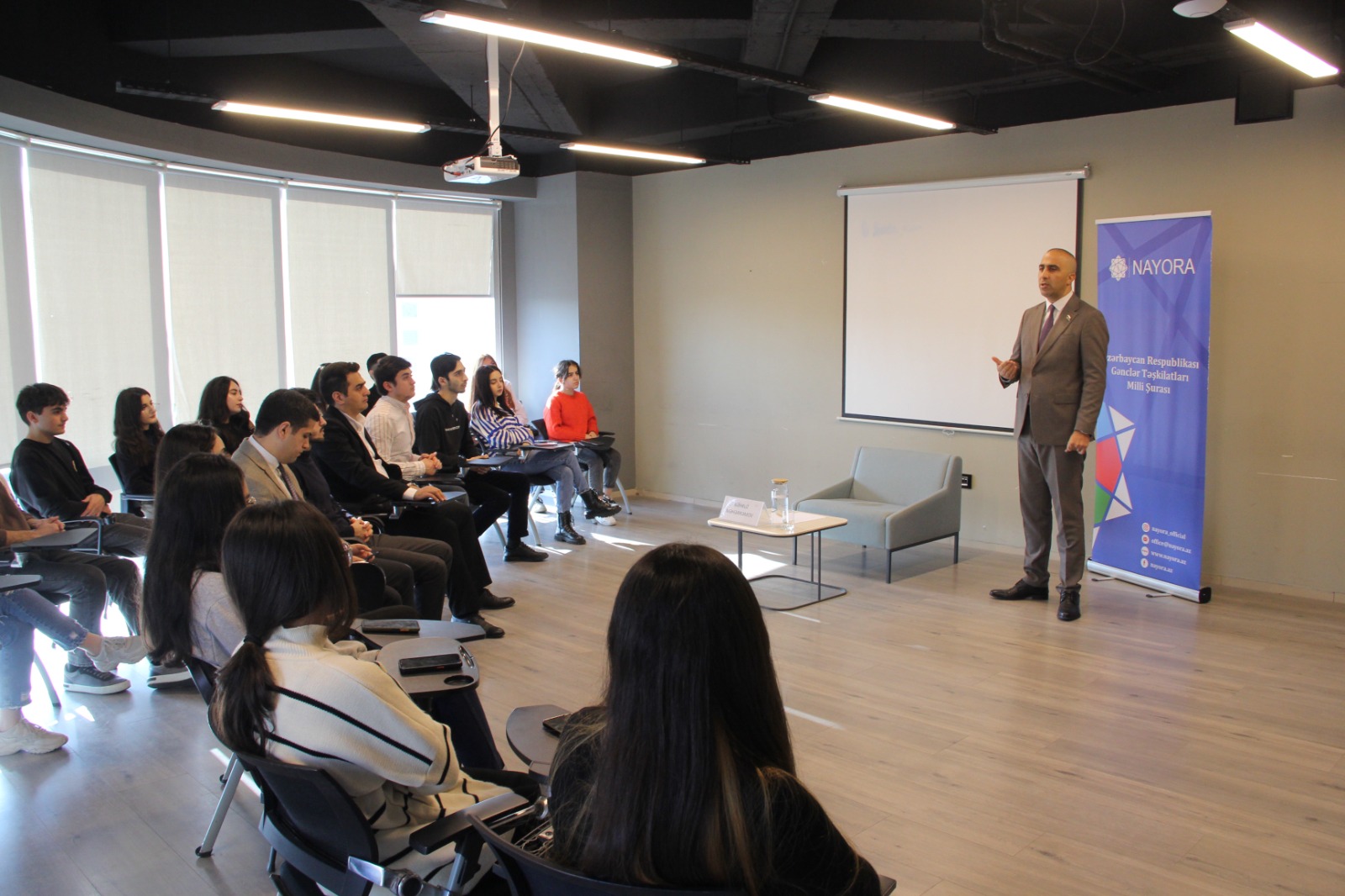 Daha sonra Gənclər Təşkilatlarının Resurs Mərkəzində Milli Məclisin deputatı Bəhruz Məhərrəmovla "Gənclər təşkilatları arasında Ulu Öndərin irsinin təbliği” mövzusunda görüş keçirilib. Görüş Ümummilli Liderin əziz xatirəsinin bir dəqiqəlik sükutla anımlası ilə öz işinə başlayıb. Görüş zamanı Heydər Əliyevin xilaskarlıq missiyası, Azərbaycanın rifahlı gələcəyi üçün gənclərdən olan gözləntilər, onun əməllərinin davamçısı Prezident İlham Əliyevin ölkəmiz üçün xidmətlərindən geniş bəhs edilib, iştirakçıların çox saylı sualları cavablandırılıb.