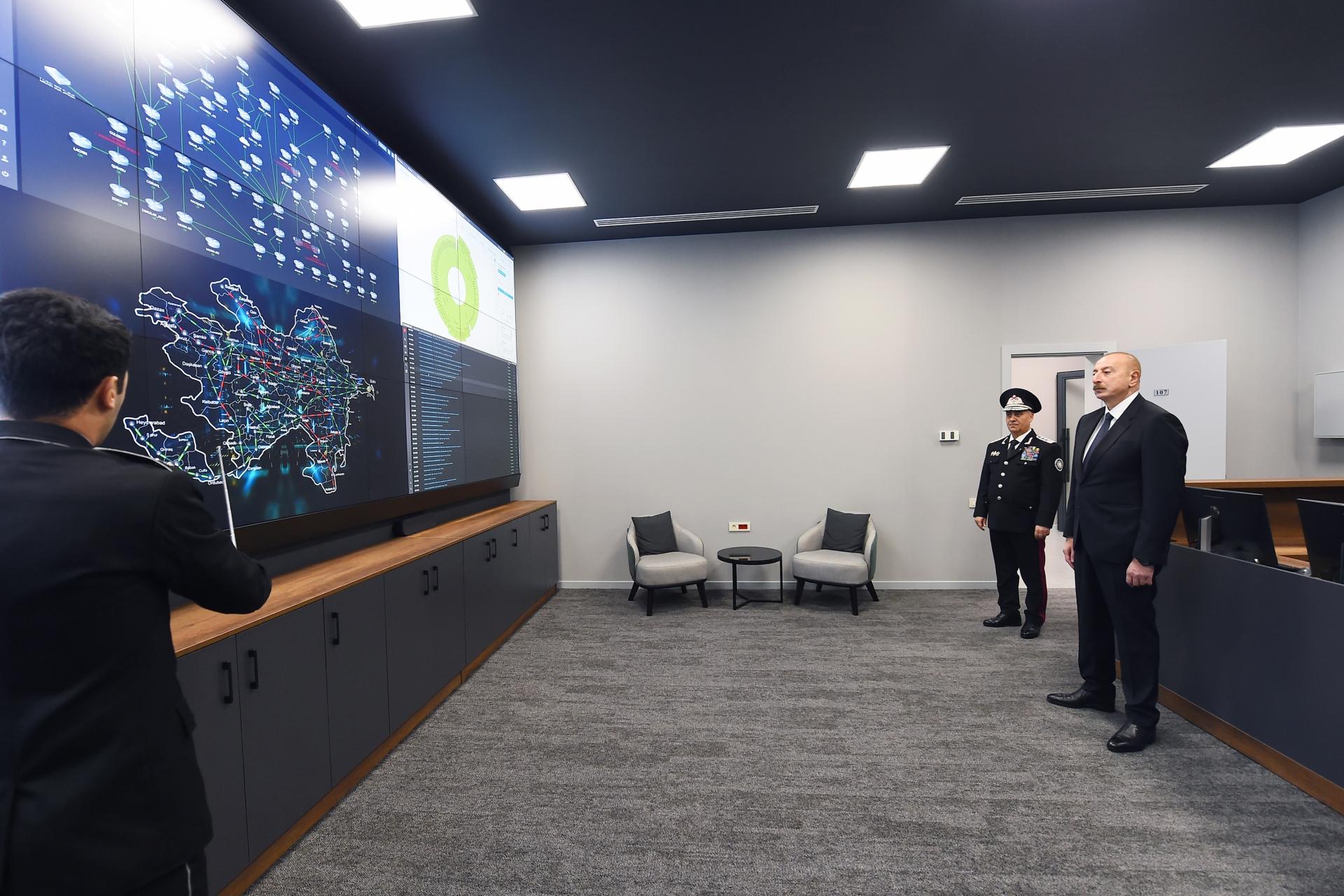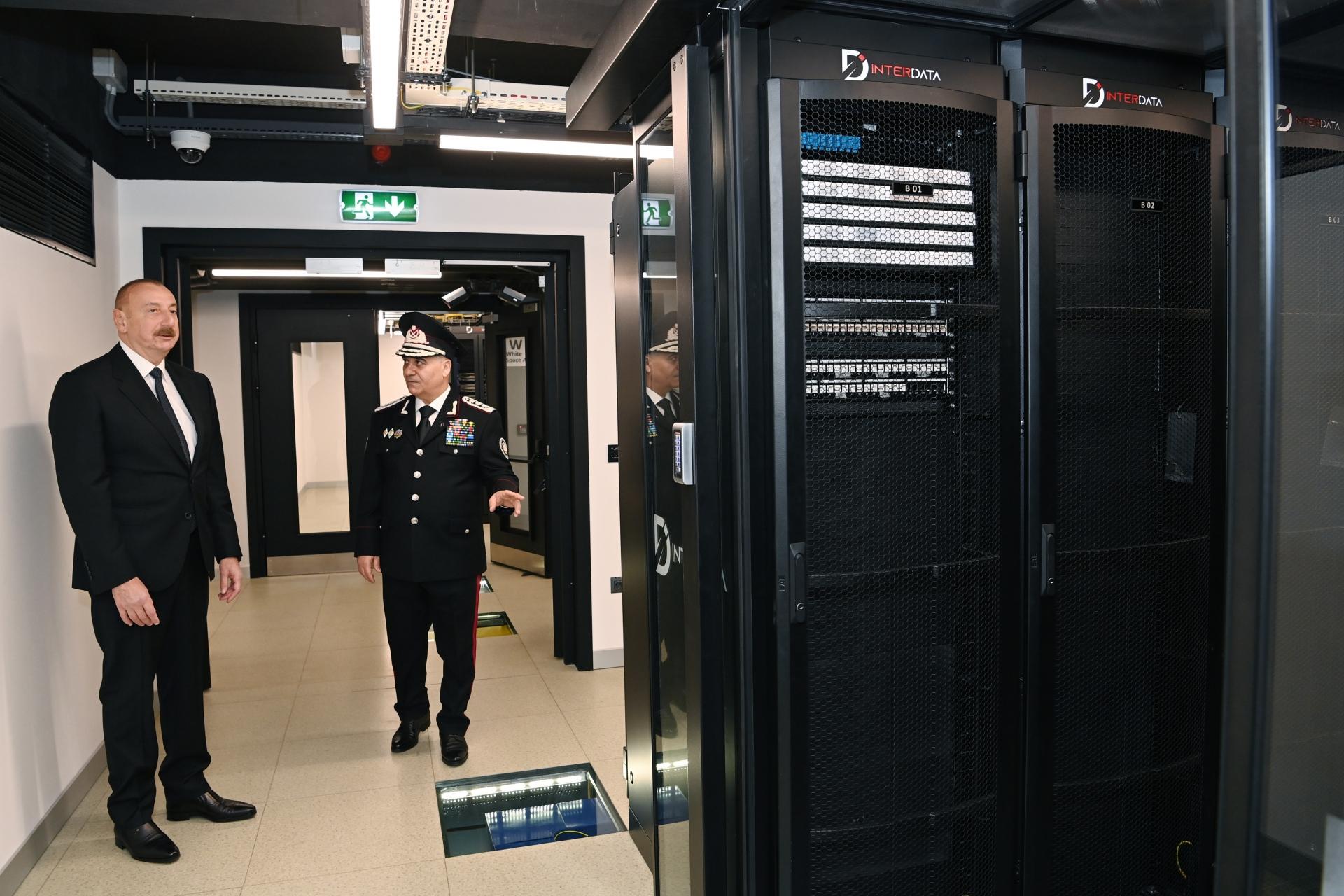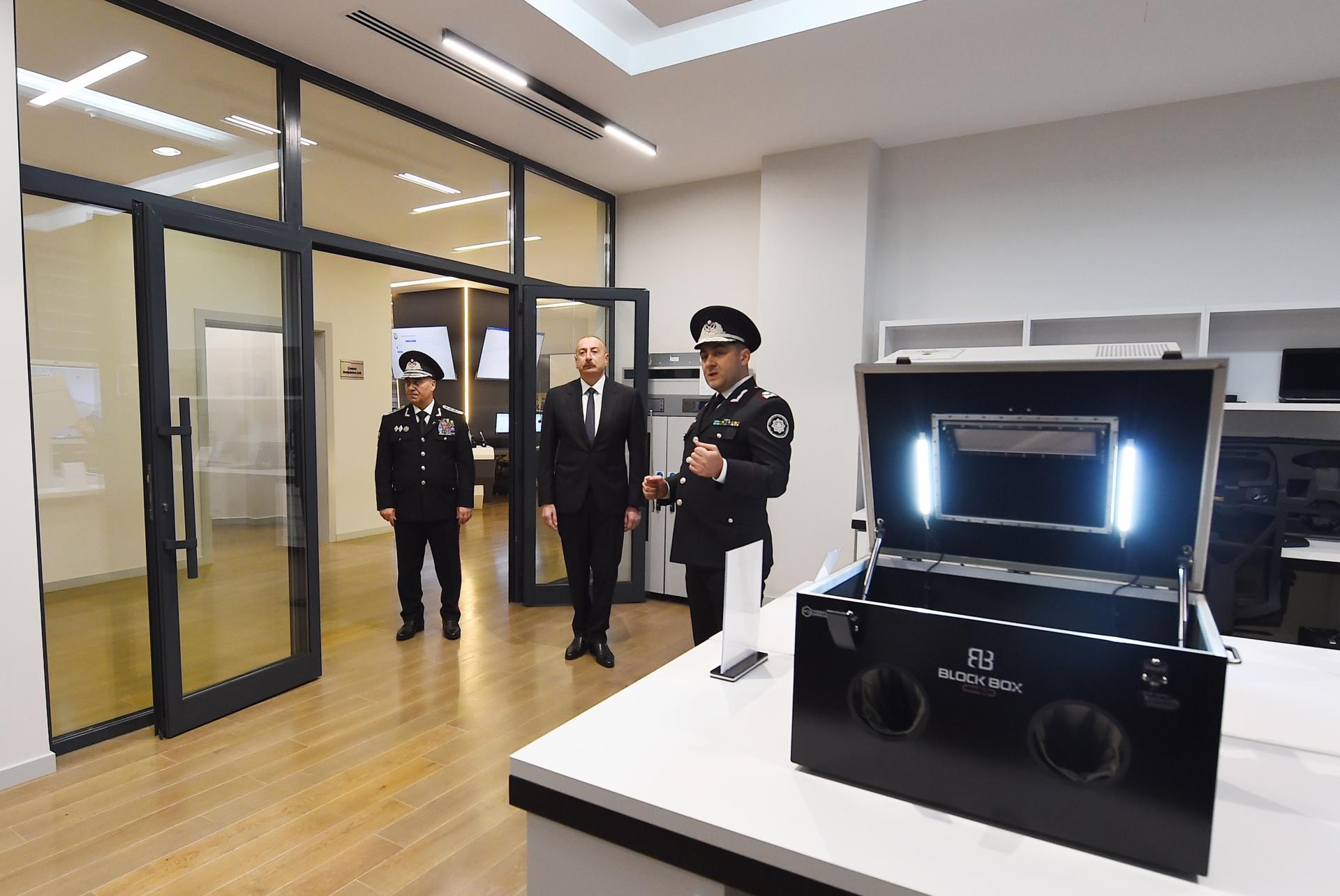 Həmçinin Azərbaycan Prezidentinə digər inzibati binada yerləşən və ən son texnoloji yenilikləri özündə birləşdirən kriminalistika, əməliyyat və şəbəkə idarəetmə mərkəzləri təqdim olunub, cinayət işlərinin təhqiqatı və müvafiq əməliyyat tədbirlərinin həyata keçirilməsi istiqamətində bu mərkəzlərin imkanları barədə məruzə edilib.