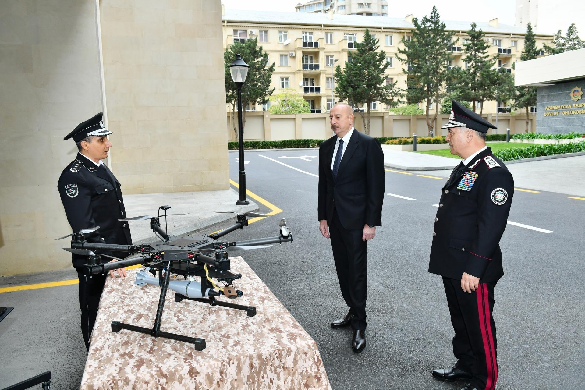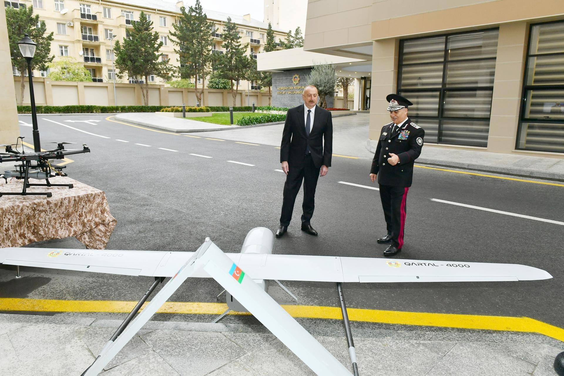 Ali Baş Komandan İlham Əliyev Dövlət Təhlükəsizliyi Xidmətinin xüsusi təyinatlı dəstəsinin istifadə etdiyi xüsusi vasitələrə, silahlara, avadanlıqlara, dron cihazlarına və xüsusi təyinatlı avtomobillərə də baxış keçirib.