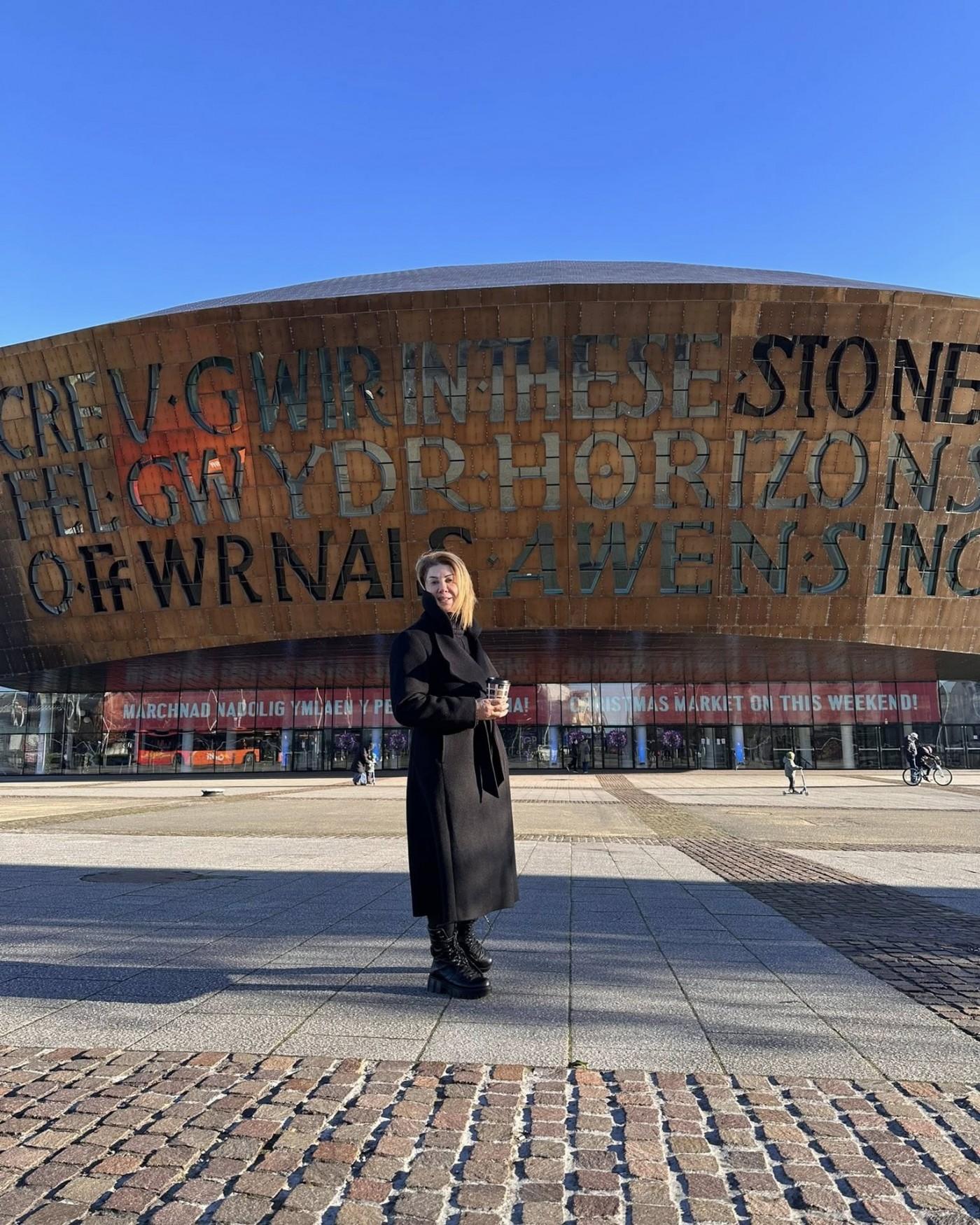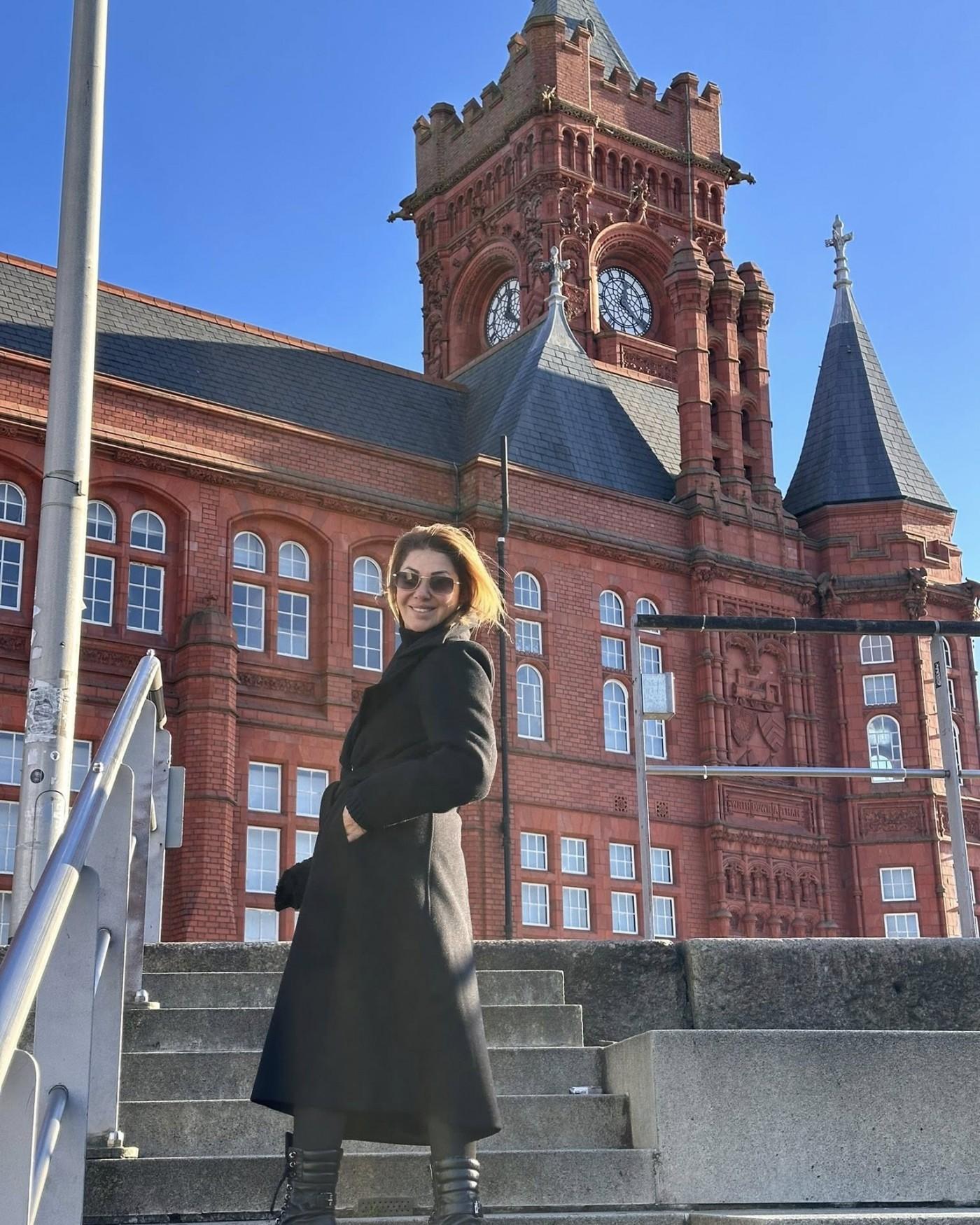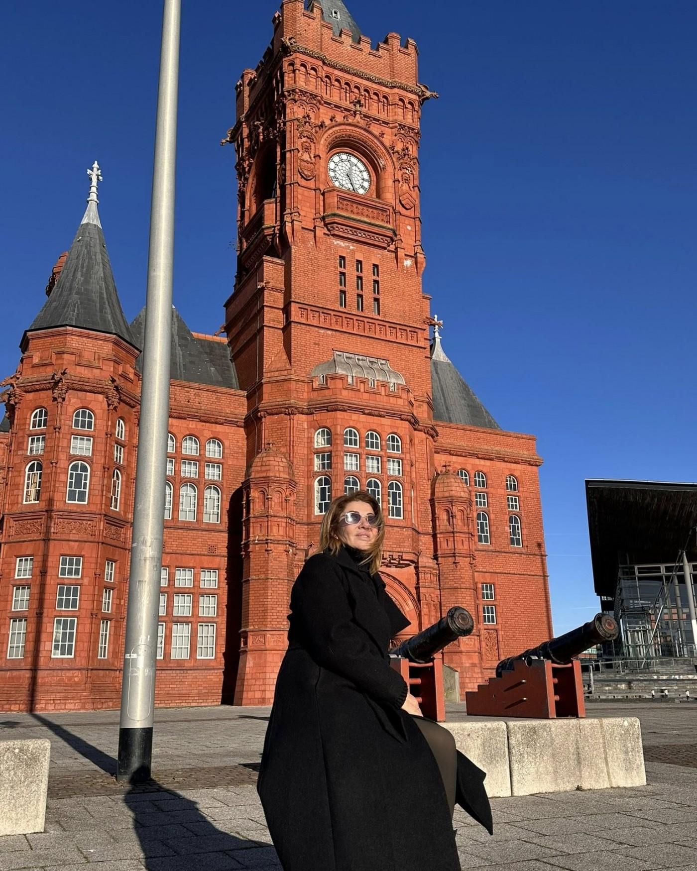 Paytaxt Kardiffdə olan aparıcı və xanımı fotolarını sosial şəbəkədə paylaşıb.