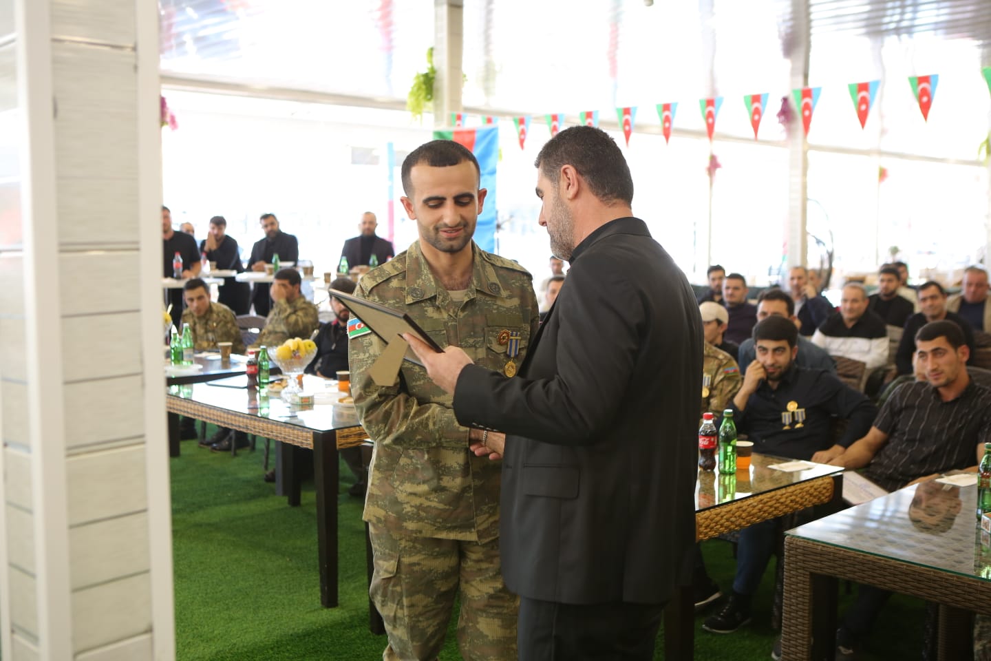 İş adamı S.Ağayev tədbirin sonunda qazi və şəhid ailələrinə diplomlar və hədiyyələr təqdim edib.