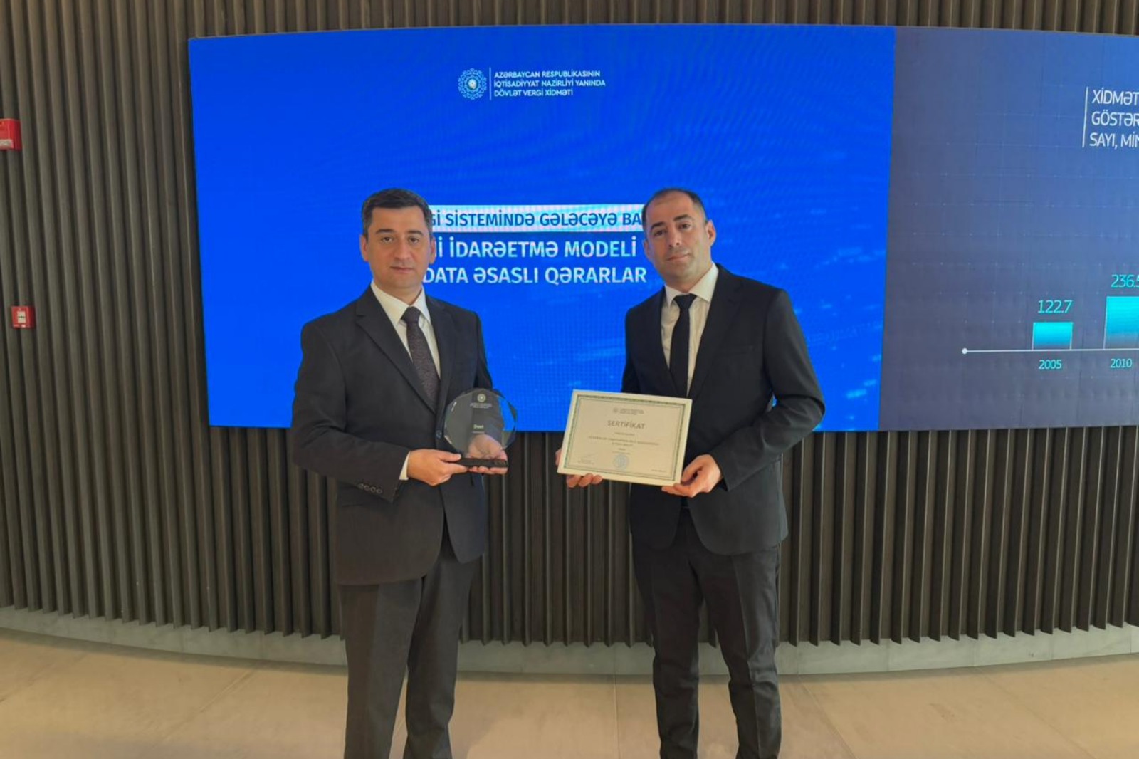 Azərbaycan Respublikasının İqtisadiyyat Nazirliyi yanında Dövlət Vergi Xidmətinin rəisi Orxan Nəzərli 2025-ci ildə vergi və sosial daxilolmaların 24,2 milyard manata yaxın olduğunu və bunun ümumi fiskal yığımların 79,1 faizini təşkil etdiyini bildirib. O, həmçinin vergi sistemində data əsaslı qərarvermə modelinə keçid və rəqəmsal ekosistemin formalaşdırılmasının əsas prioritetlərdən olduğunu vurğulayıb.