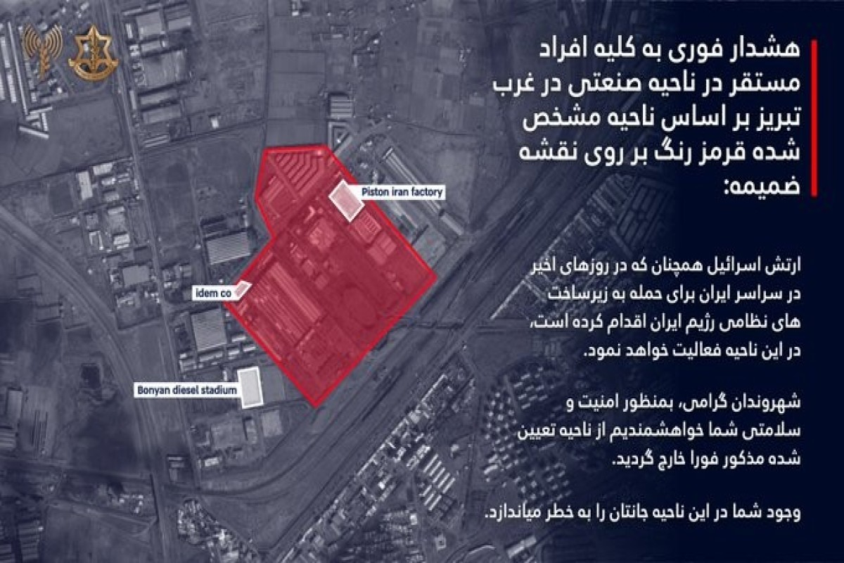 İsrail aviazərbələr öncəsi Təbriz sakinlərinə təcili xəbərdarlıq edib.