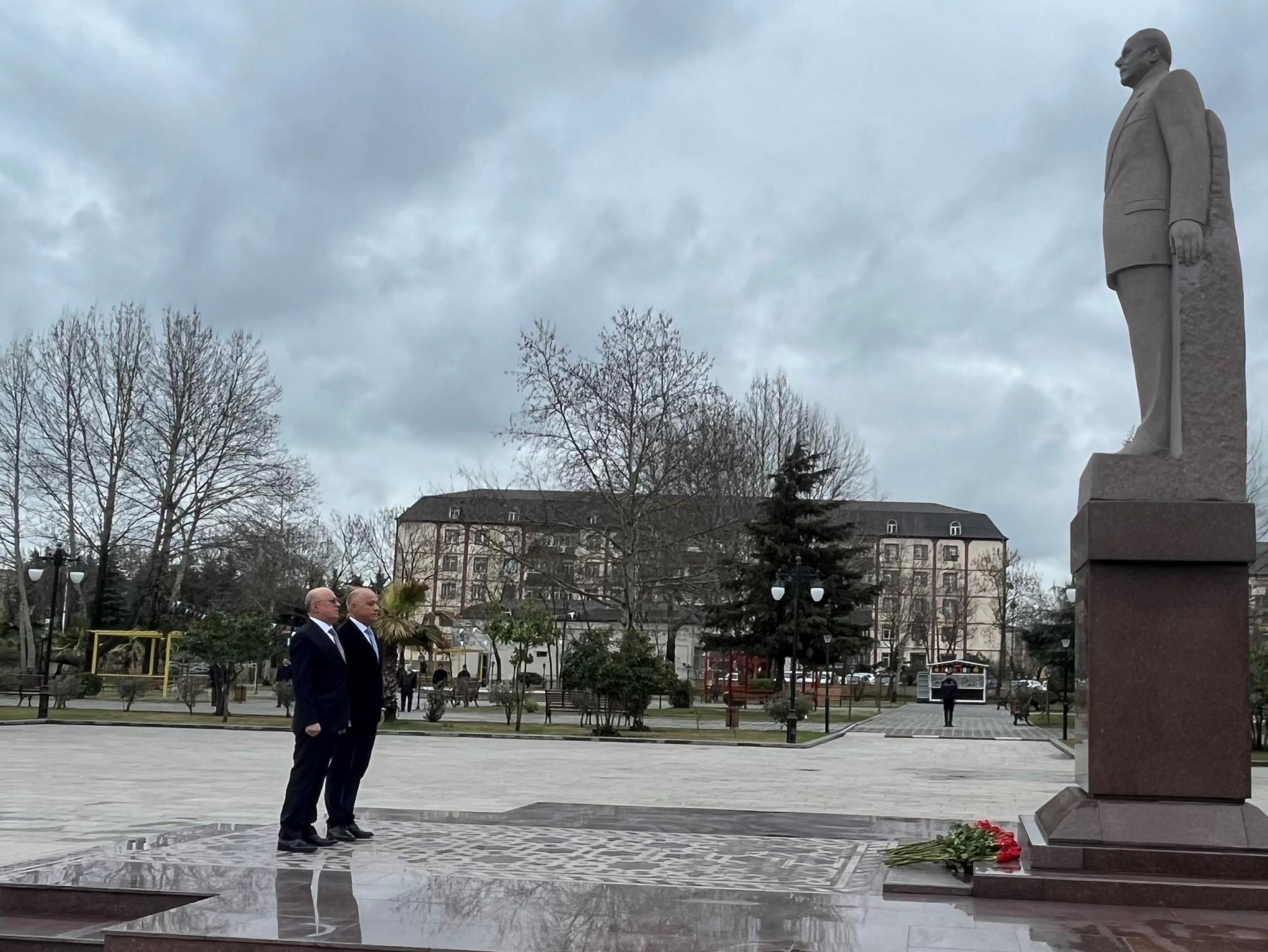 AZXEBER.COM xəbər verir ki, əvvəlcə nazir K.Heydərov xalqımızın Ümummilli Lideri Heydər Əliyevin Masallı şəhərindəki abidəsini ziyarət edərək önünə gül dəstəsi qoyub, əziz xatirəsini dərin ehtiramla yad edib.