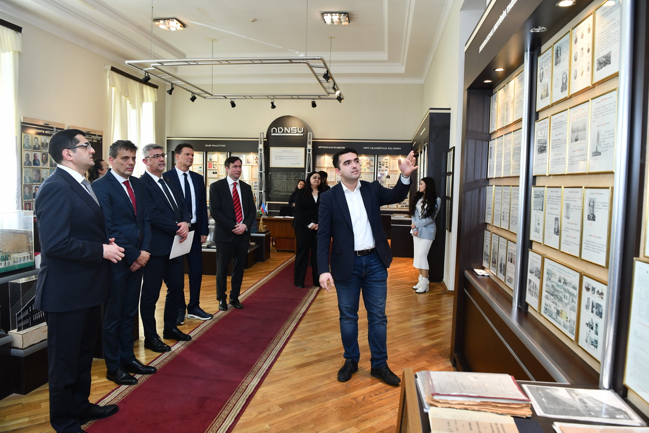 Nümayəndə heyəti səfər çərçivəsində ADNSU-da Tarix Muzeyi, Kibertəhlükəsizlik laboratoriyası, kompüter otaqları və UFAZ laboratoriyaları ilə tanış olublar, universitetin tədqiqat infrastrukturu və innovasiya imkanlarını yüksək qiymətləndiriblər.