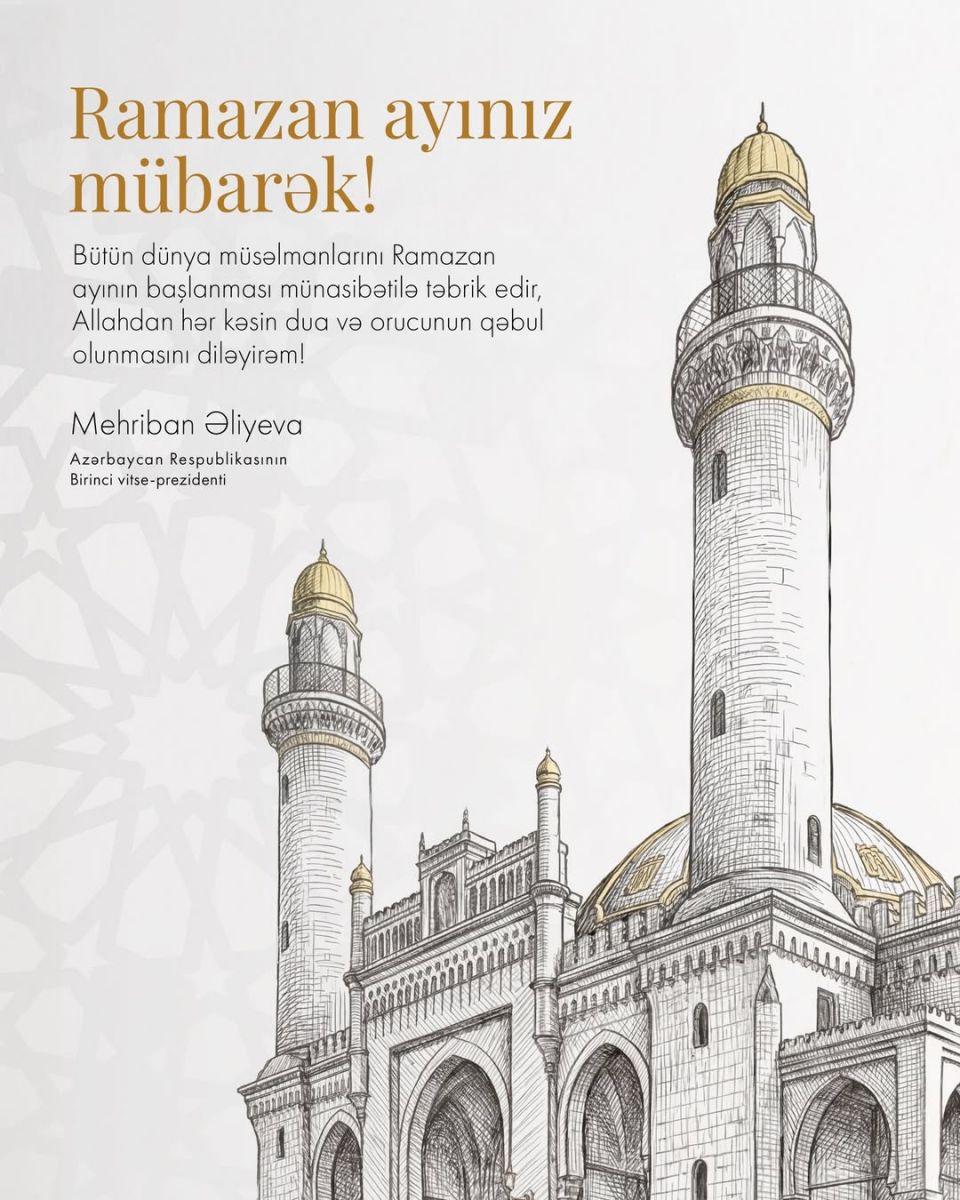 Birinci vitse-prezidenti Mehriban Əliyeva Ramazan ayının başlaması münasibətilə paylaşım edib. AZXEBER.COM həmin paylaşımı təqdim edir:
