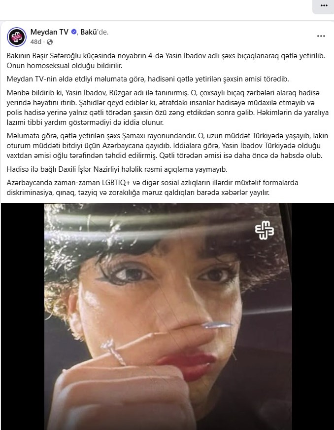 Meydan TV öldürülən şəxsin cinsi azlıq olduğunu niyə xüsusi qabardır? - Hacıbəy Heydərli yazır