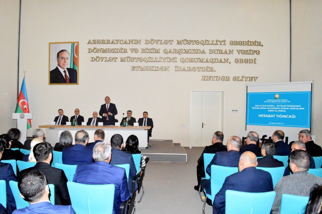Naftalan şəhər Heydər Əliyev Mərkəzində Naftalan şəhərinin 2025-ci ilin sosial-iqtisadi inkişafının yekunları və qarşıda duran vəzifələrə həsr olunmuş hesabat yığıncağı keçirilib.