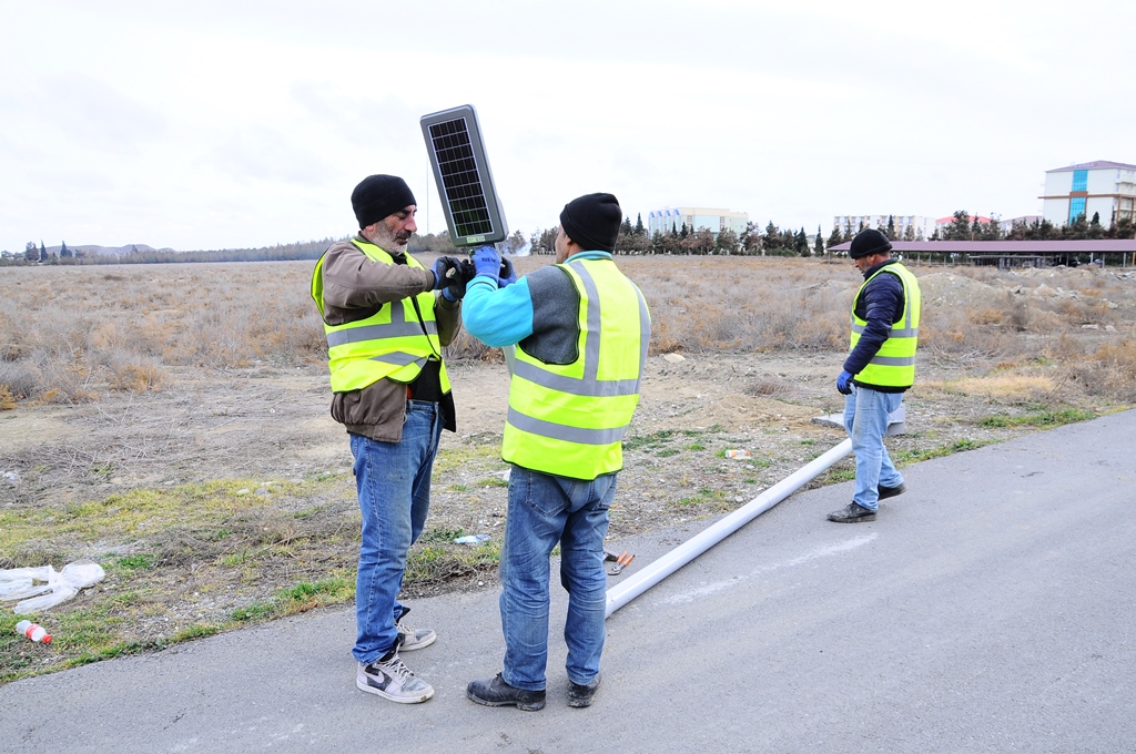 AZXEBER.COM xəbər verir ki, əvvəllər şəhərin müxtəlif ərazilərində qurulmuş işıqlandırma sistemləri kimi burada qurulan işıqlandırma sistemi də alternativ, yəni günəş enerjisi ilə qidalanan lampa və solar batareyalarla təchiz olunub.
