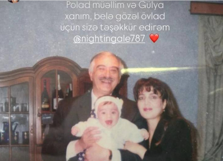 Aysel şəkillərə "Ad günün mübarək. Hər zaman parla. Polad müəllim və Gulya xanım, belə gözəl övlad üçün sizə təşəkkür edirəm" sözlərini yazıb.