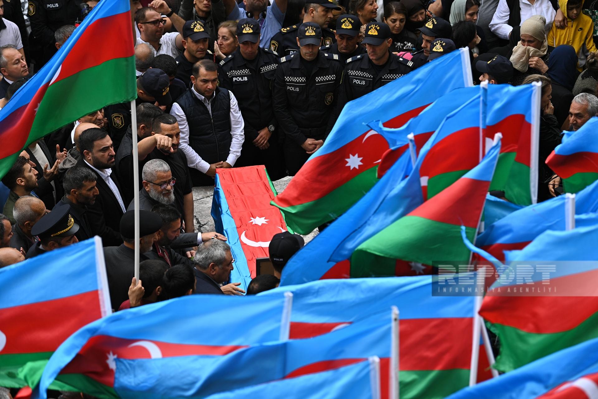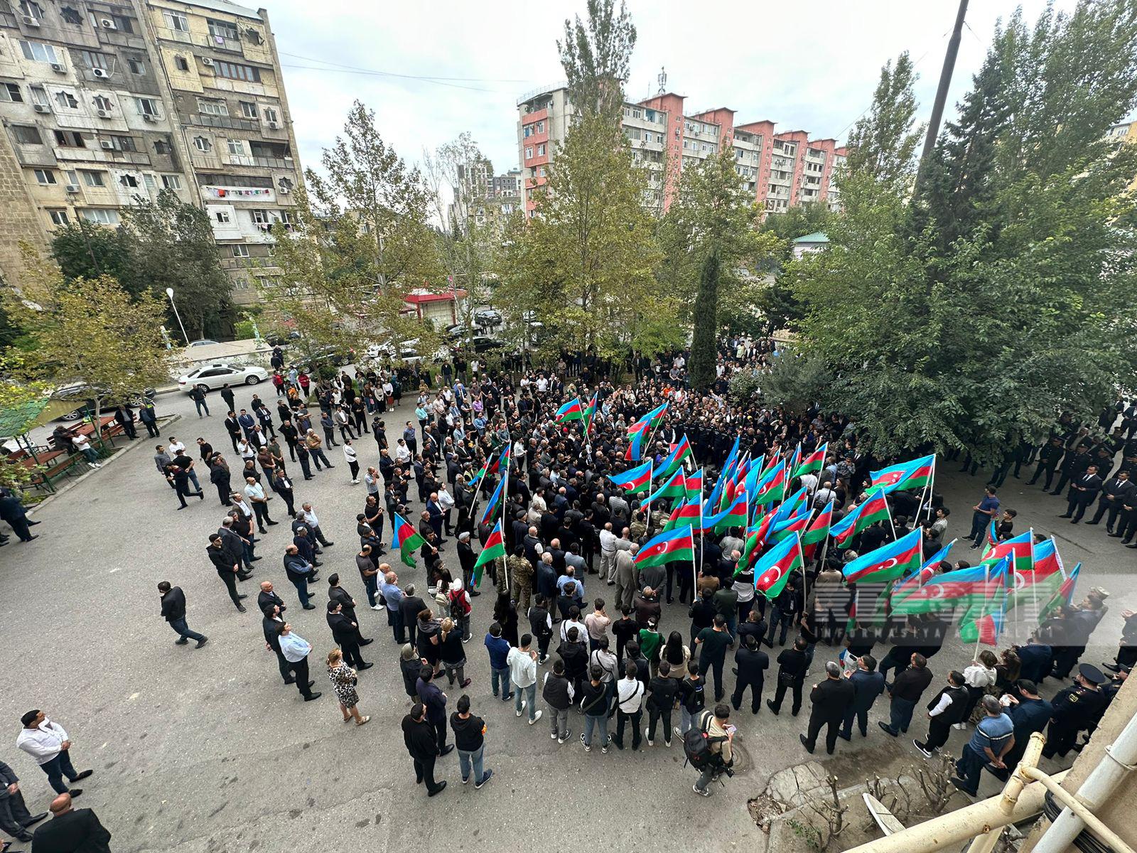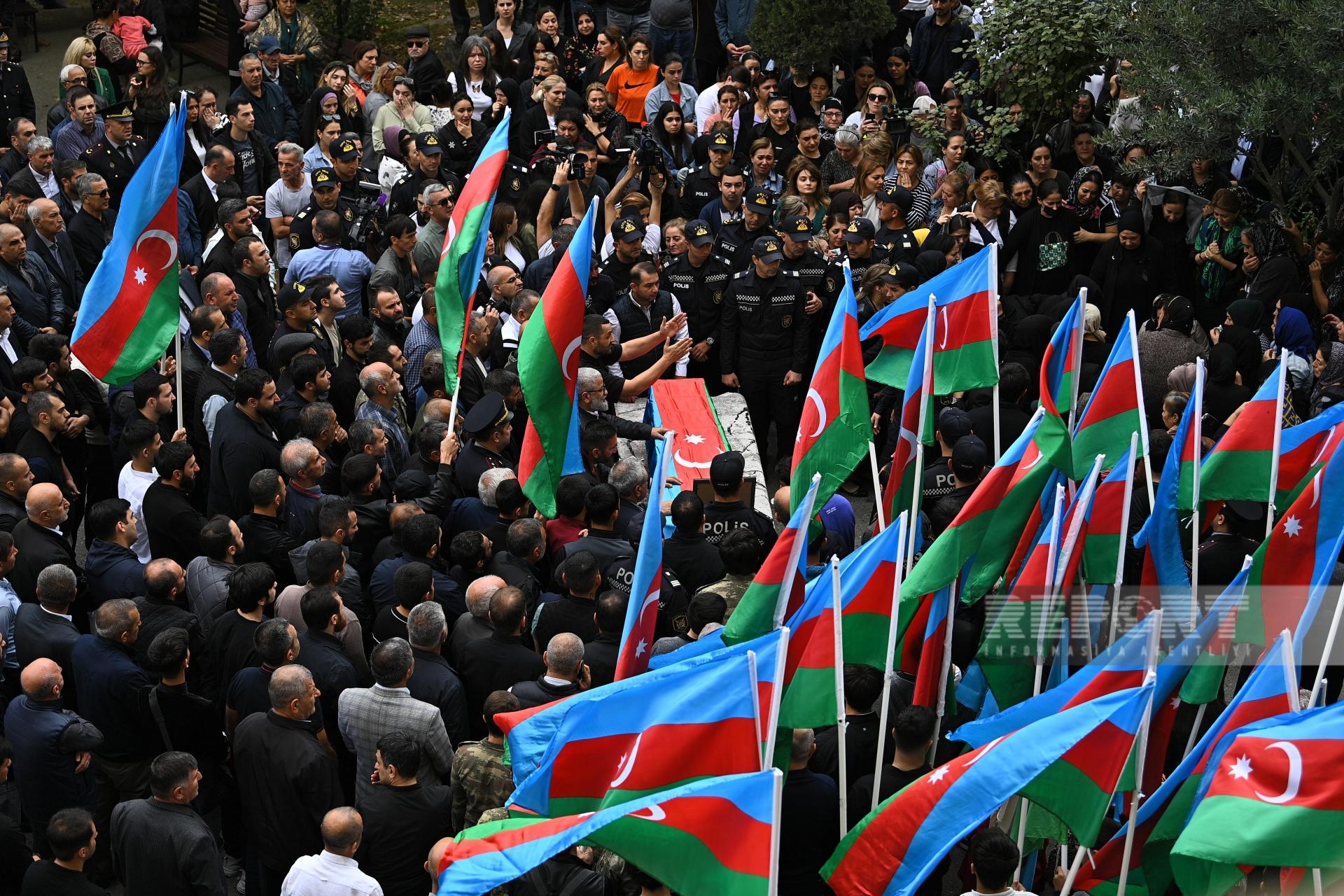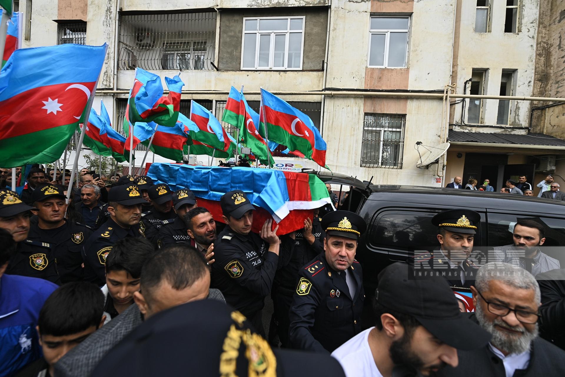 Sentyabrın 19-da qanunsuz erməni silahlı birləşmələrinin təxribat-diversiya qrupu tərəfindən Xocavənddə yerləşdirilən minanın partladılması ilə törədilən terror aktı nəticəsində həlak olan polis əməkdaşı Xəzər Zamanovla vida mərasimi keçirilir.