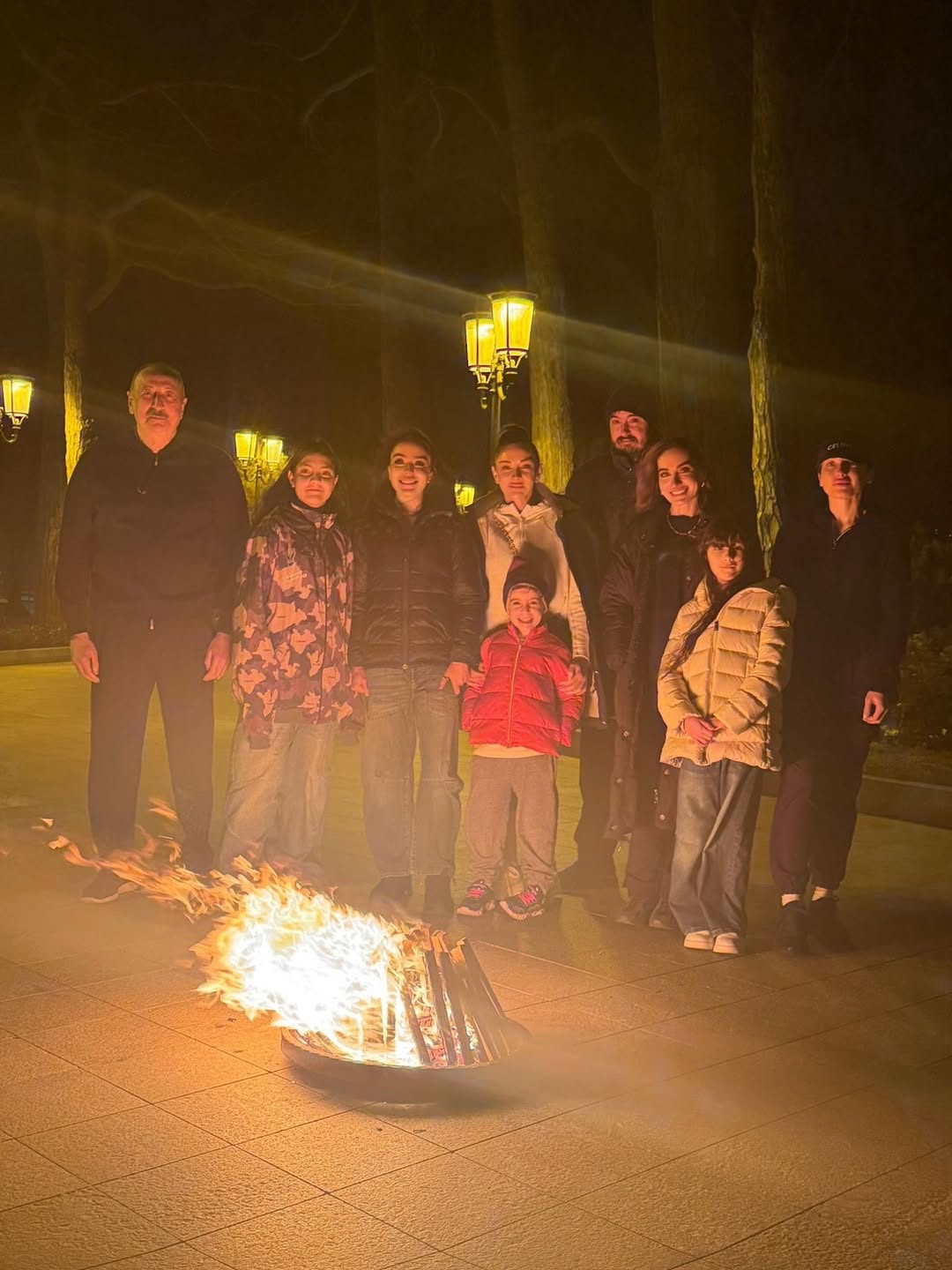 AZXEBER.COM-un məlumatına görə, dövlət başçısı ailəsi ilə adət-ənənələrə uyğun olaraq tonqal ətrafında toplaşıb.