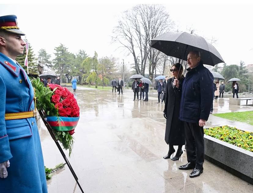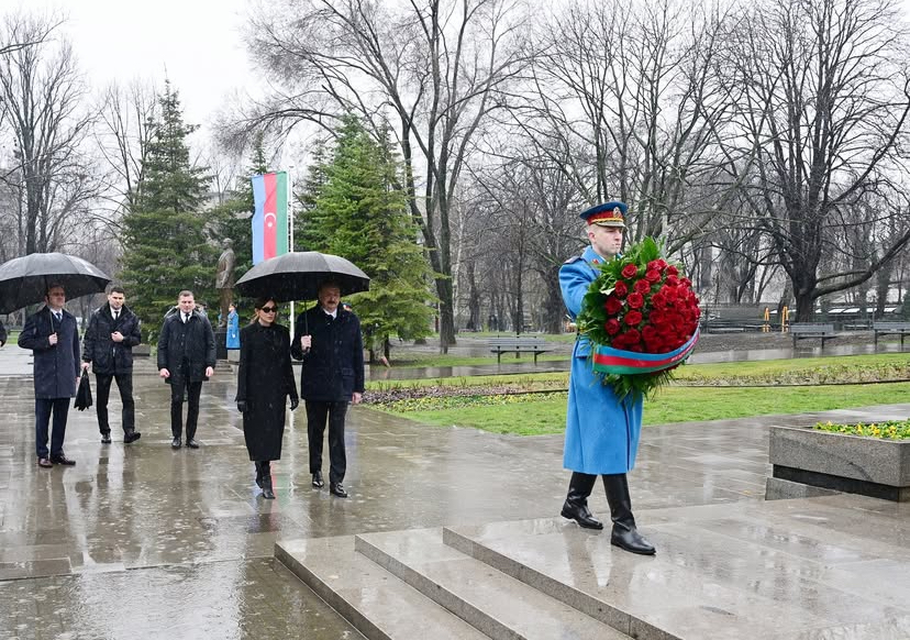 AZXEBER.COM xəbər verir ki, dövlətimizin başçısı abidələrin önünə əklil qoyub.