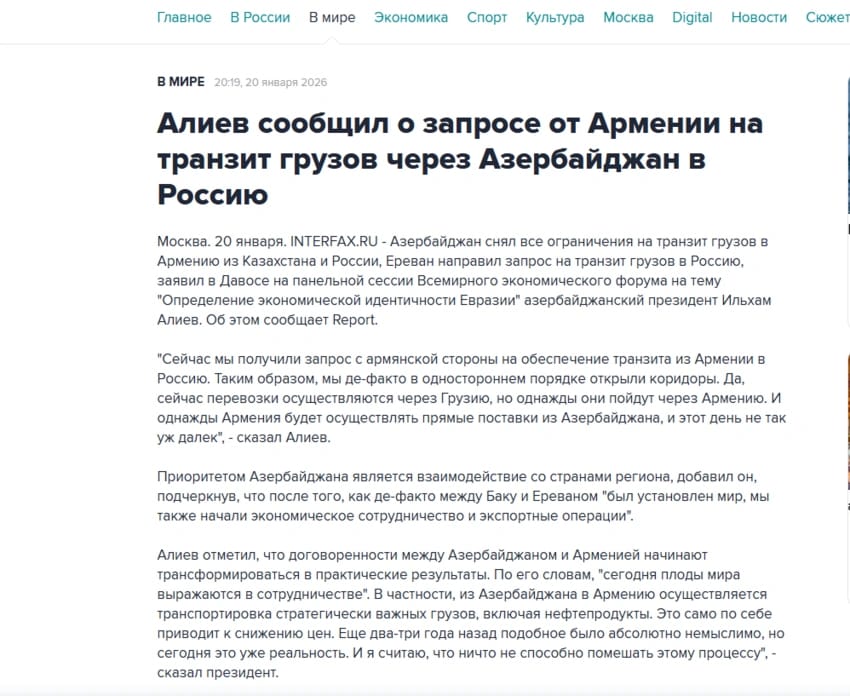 Qeyd edək ki, "interfax.ru", "Kommersant", "lenta.ru", "izvestiya.ru" və "vedomosti.ru" saytları məqalələrini "Report"a istinadən yayıblar.