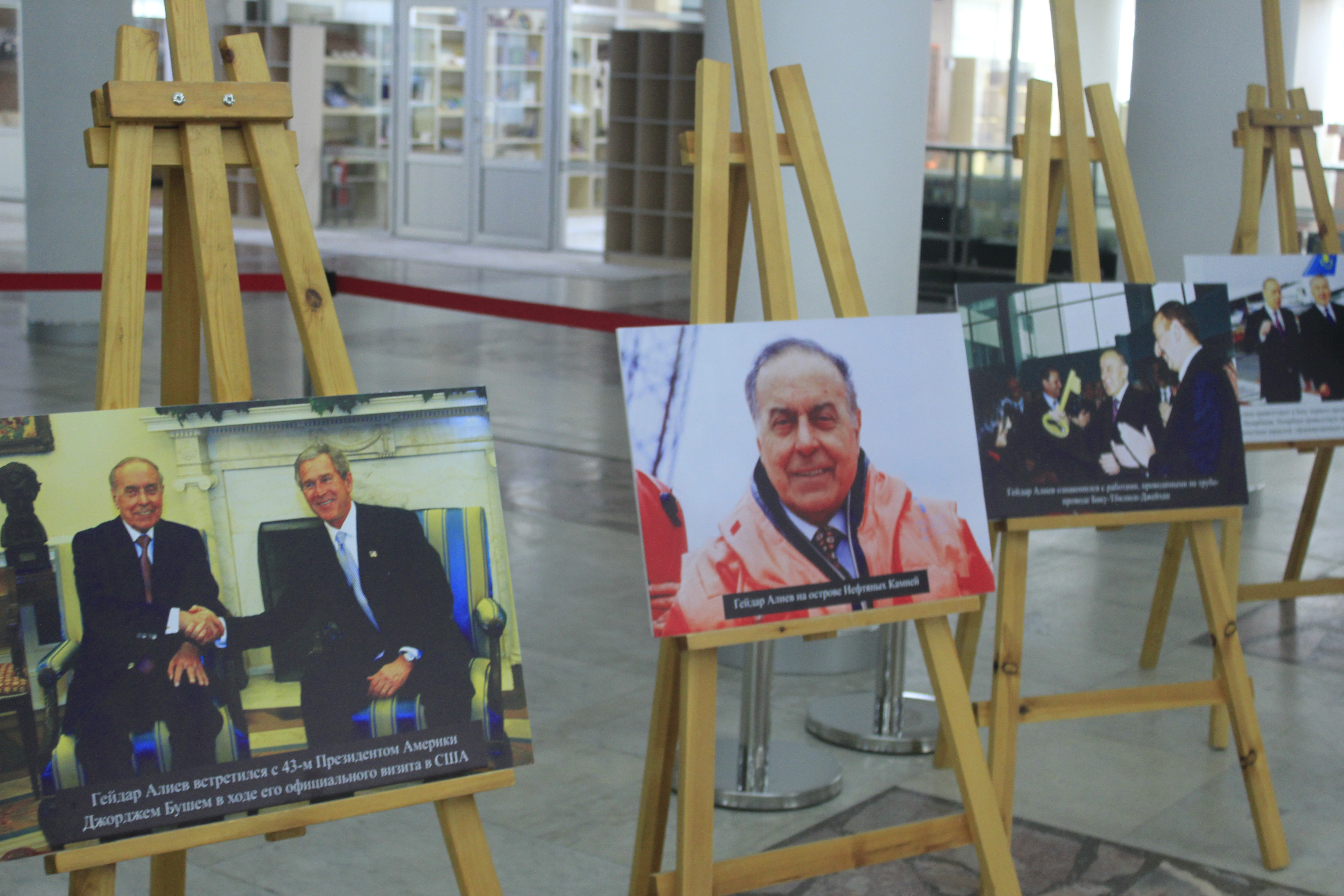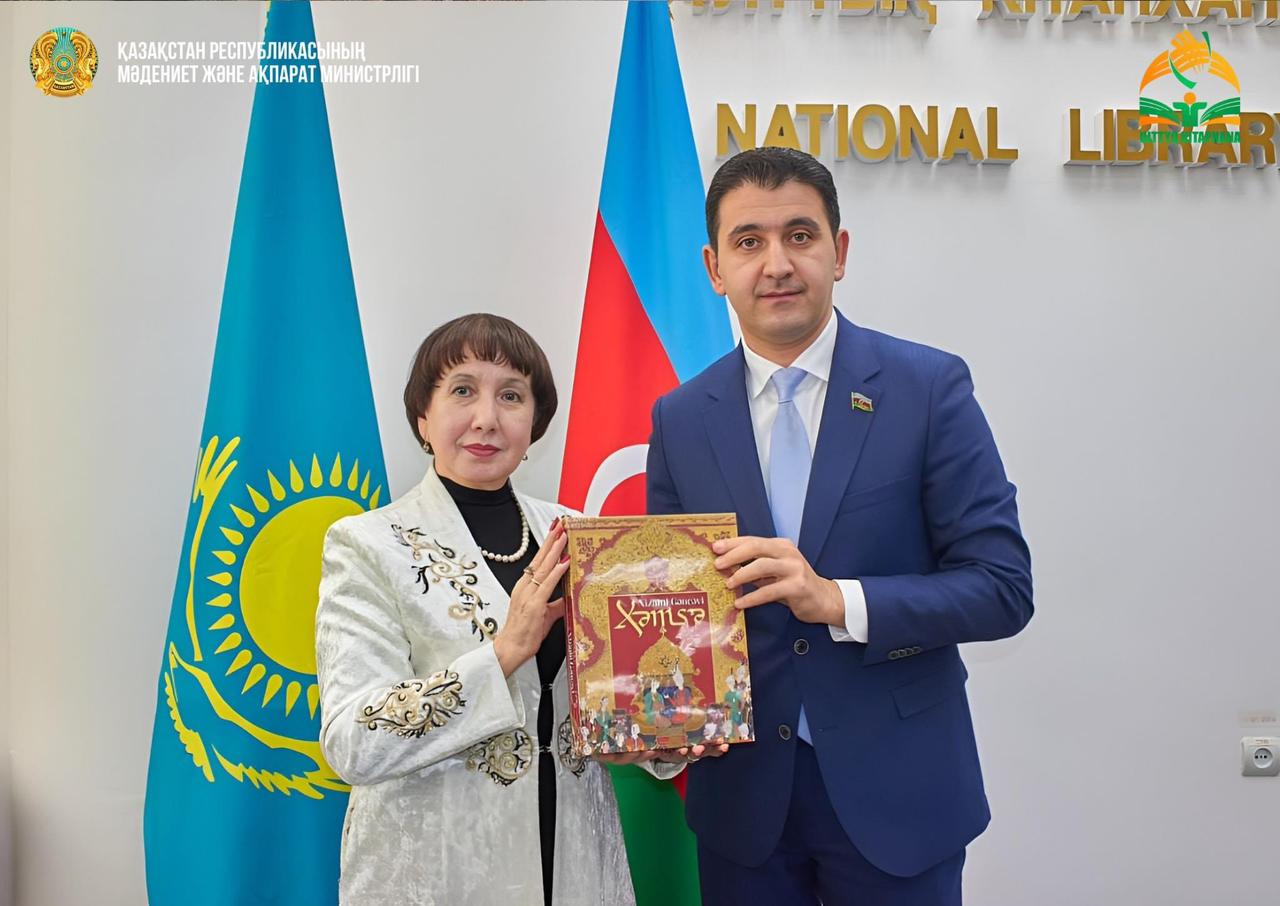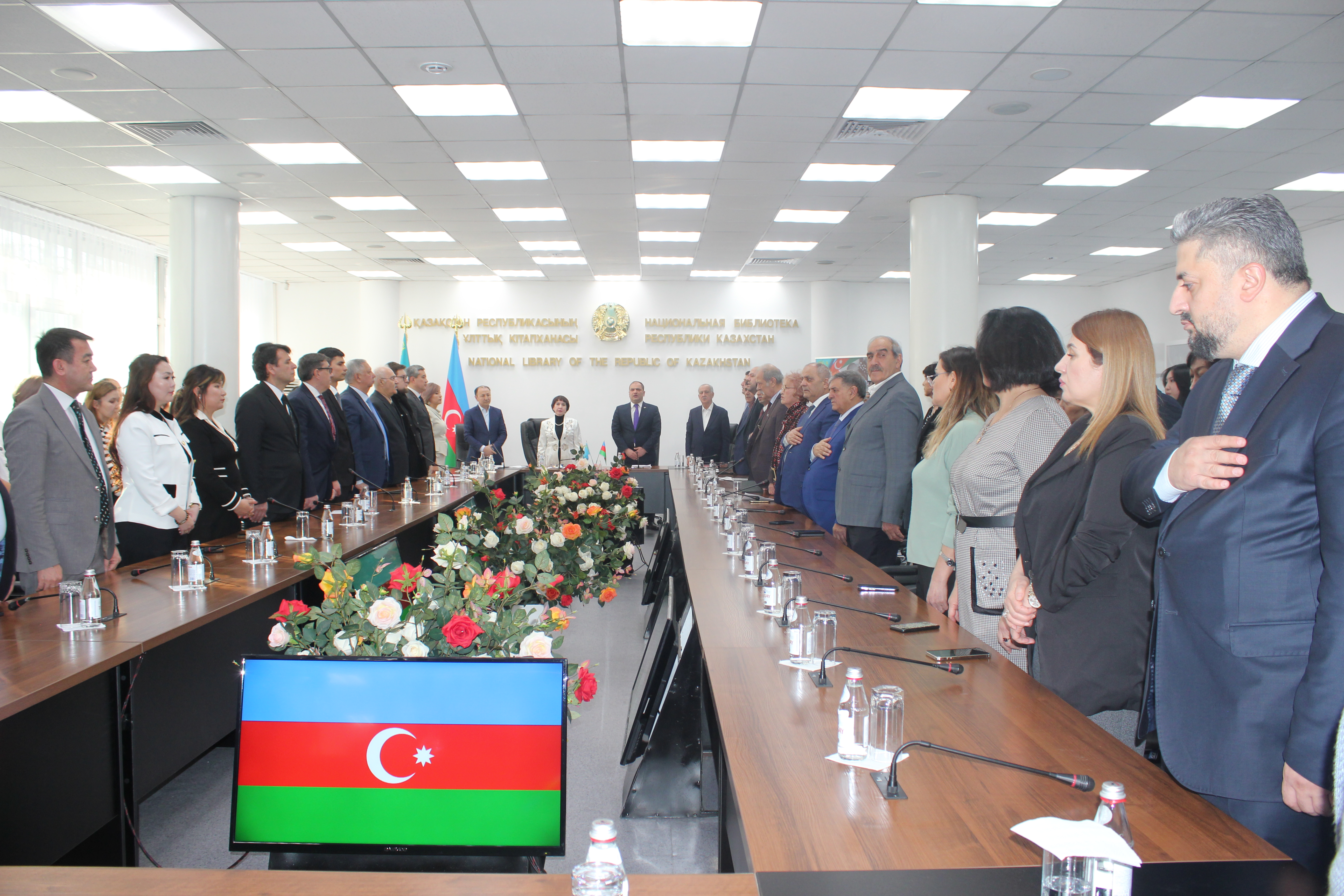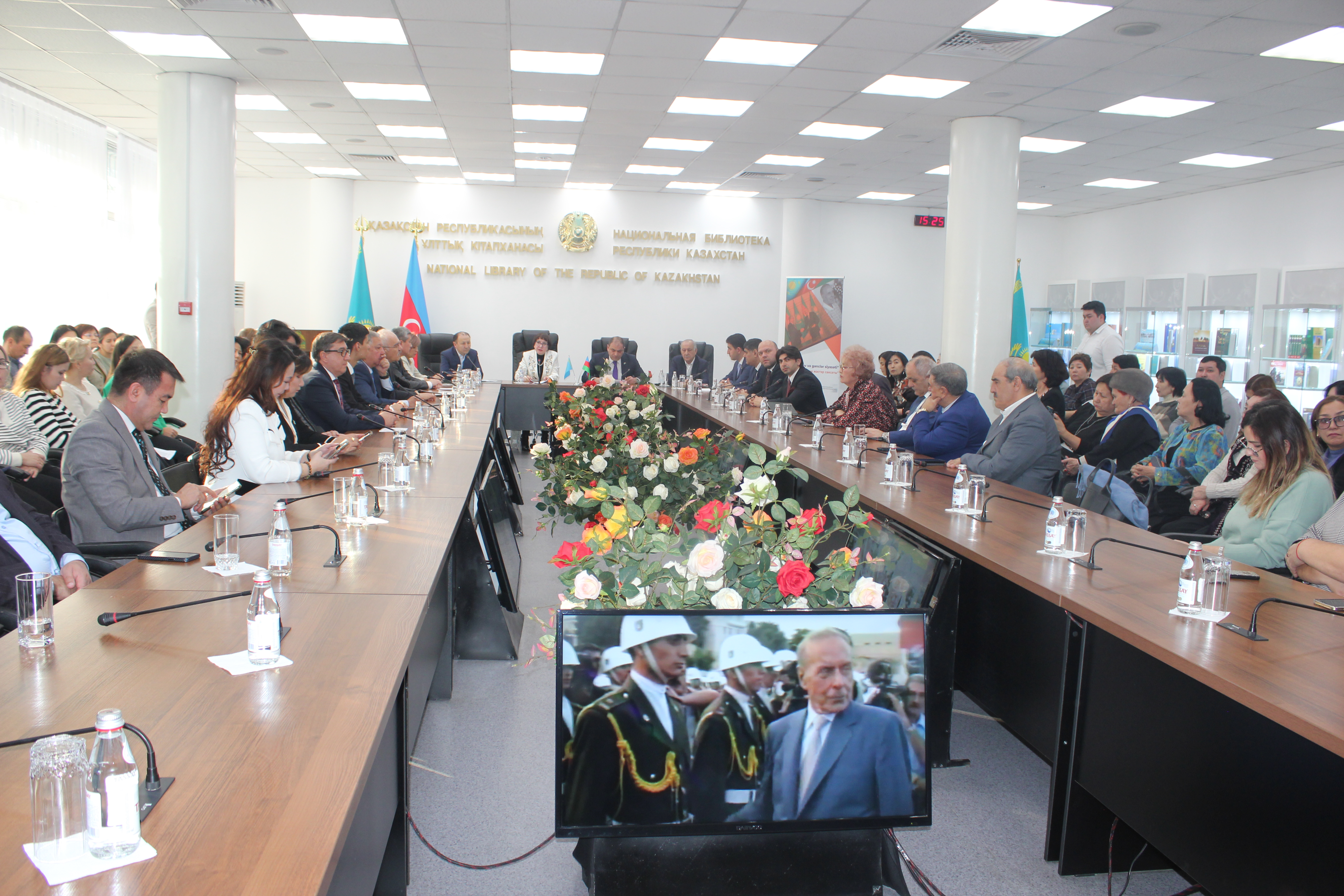 Qazaxıstan Milli Kitabxanasında baş tutan tədbirdə ulu öndər Heydər Əliyevin 100 illik yubileyinə həsr edilən fotosərgi təşkil edilib.