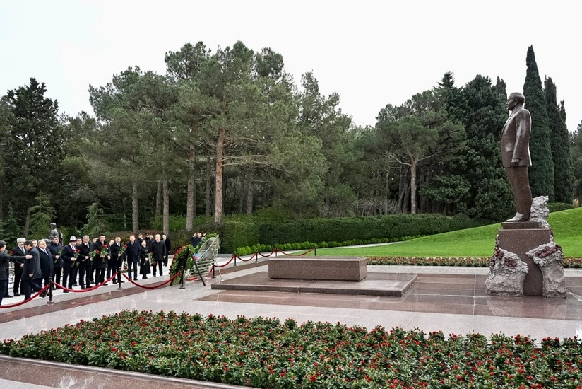 AZXEBER.COM xəbər verir ki, nümayəndə heyəti əvvəlcə xalqımızın Ümummilli Lideri, müasir müstəqil Azərbaycan dövlətinin memarı və qurucusu Heydər Əliyevin xatirəsini ehtiramla yad edib, məzarı önünə əklil qoyub, tər çiçəklər düzüb.