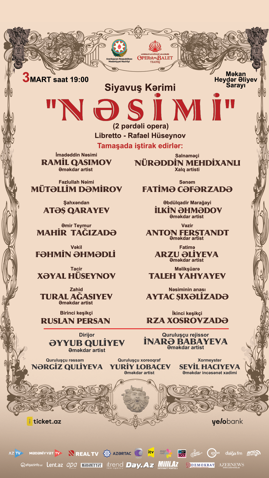 Tamaşa 3 mart tarixində, saat 19:00-da, Heydər Əliyev Sarayında nümayiş olunacaq.
