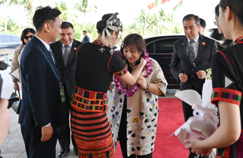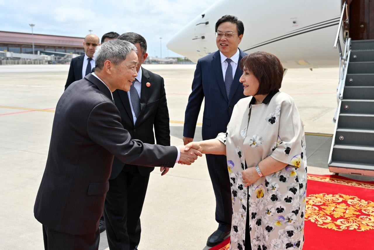 Qionghai Boao beynəlxalq hava limanında Milli Məclisin sədrini Hainan Əyalətinin vitse-qubernatoru Yanq Quigianq, Azərbaycanın Çindəki səfiri Bünyad Hüseynov və digər rəsmi şəxslər qarşılayıblar.