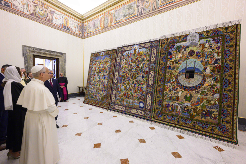 "Səmavi dinlər” layihəsi əsasında Azərbaycan xalçaçılarının ərsəyə gətirdiyi triptix Vatikanda təqdim edilib. Azərbaycan Respublikasının Birinci vitse-prezidenti Mehriban Əliyevanın Roma Papası XIV Leo ilə görüşündə təqdimatı olan bu sənət əsəri iudaizm, xristianlıq və İslam dinlərinə həsr edilib, dərin fəlsəfi düşüncənin, milli sənətkarlıq ruhunun təcəssümüdür.