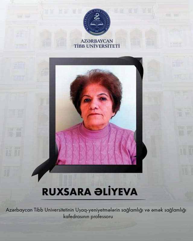 Azərbaycan Tibb Universitetinin Uşaq-yeniyetmələrin sağlamlığı və əmək sağlamlığı kafedrasının professoru Ruxsara Həmdulla qızı Əliyeva vəfat edib.