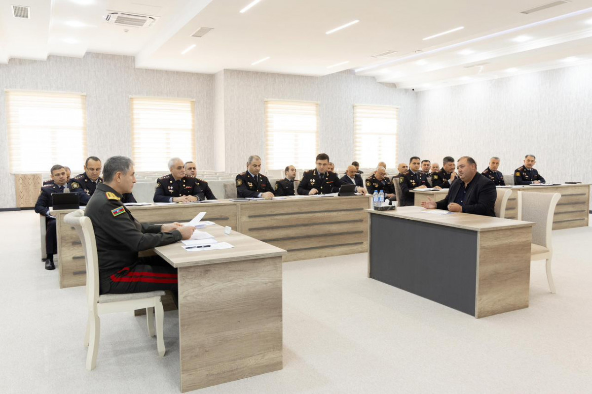 Səfər çərçivəsində general-polkovnik Vilayət Eyvazov polis və daxili qoşunlarda xidmət etmək arzusunda olan gənclərin sıra baxışını keçirib.