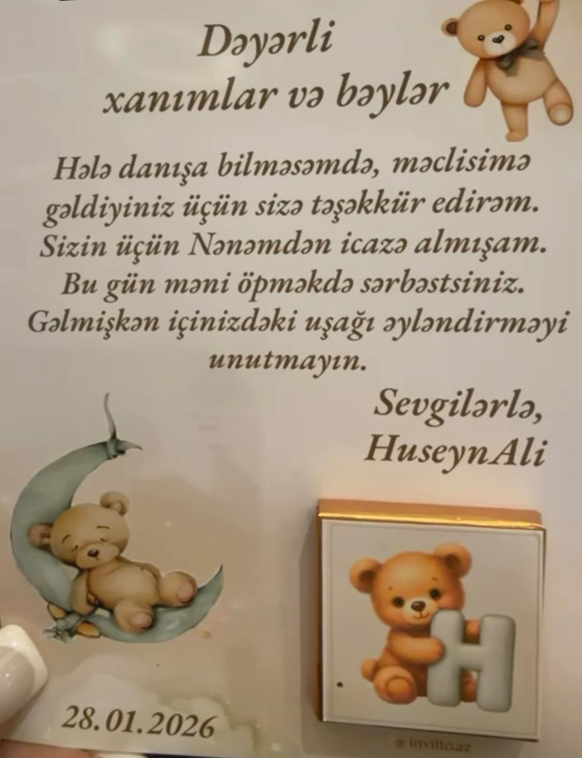 Xəbər verdiyimiz kimi, xalq artisti Simarə İmanova bir ay öncə nənə olub. AZXEBER.COM xəbər verir ki, o, yeni doğulmuş nəvəsinə 40 gün məclisi edib. Məclisdə bir çox sənət nümayəndəsi iştirak edib. Aysel