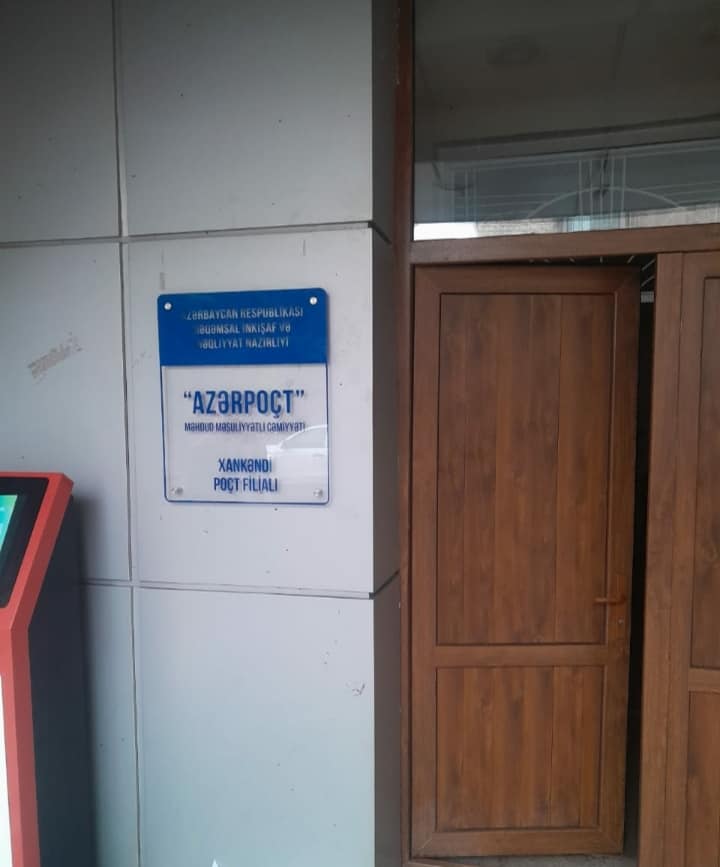 "Azərpoçt”un Xankəndi filialı fəaliyyətə başlayıb. AZXEBER.COM xəbər verir ki, bunu əks etdirən görüntülər sosial şəbəkələrdə yayılıb. Yeni filial qondarma rejimdə "Artsakhpost” kimi fəaliyyət göstərən saxta qurumun binasına köçürülüb.