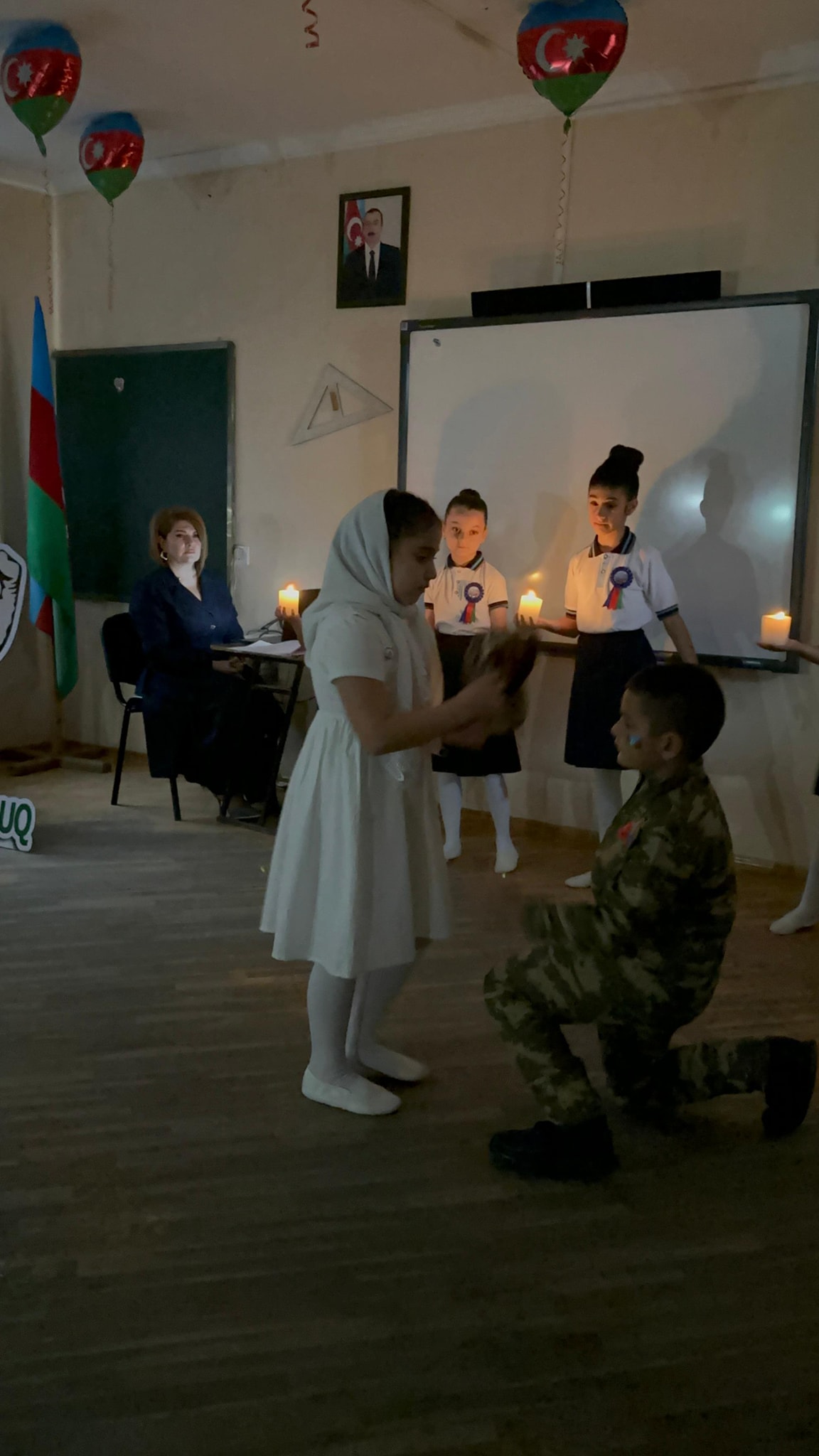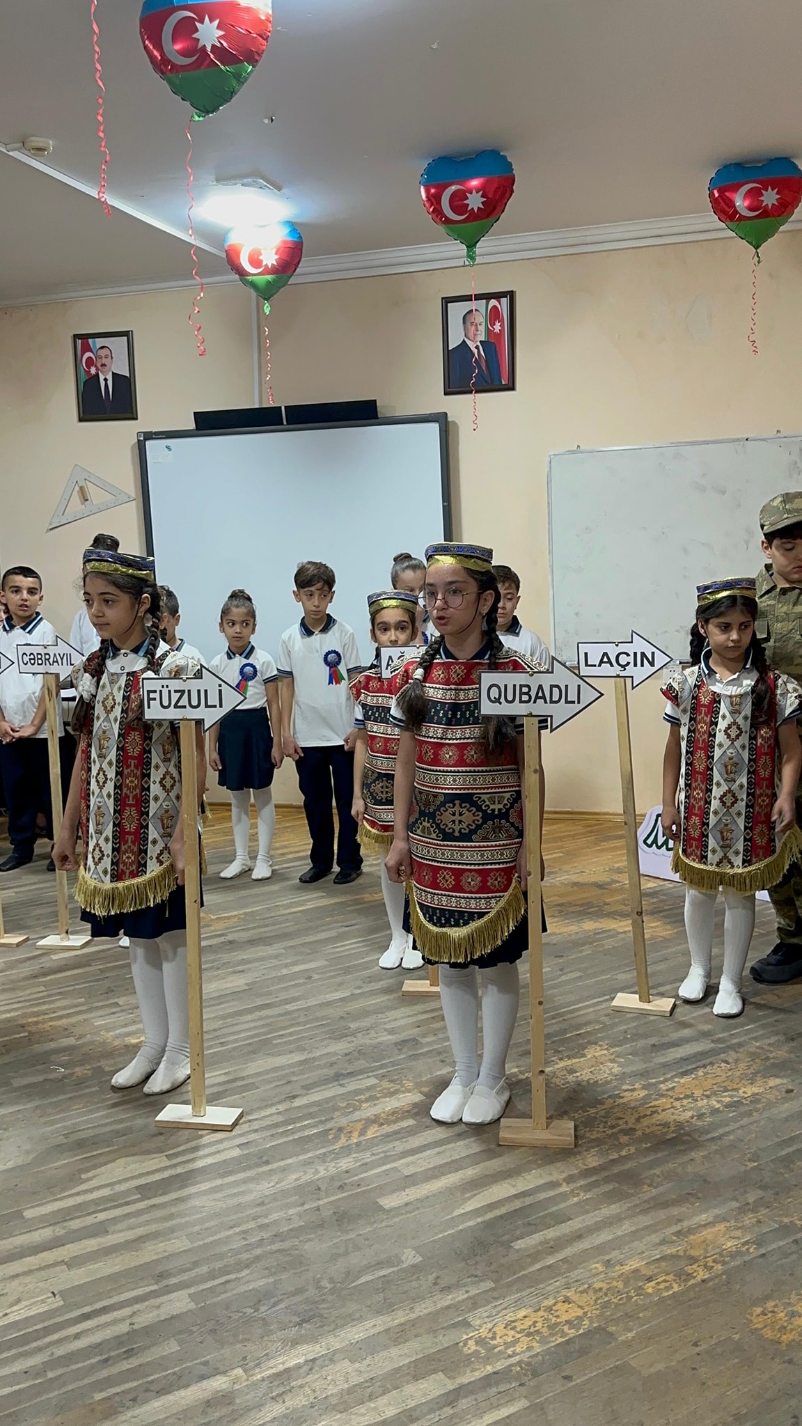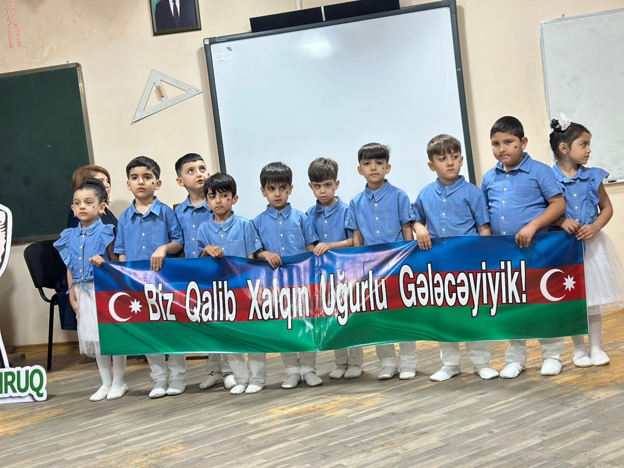 AZXEBER.COM xəbər verir ki, tədbir Zəfər Gününə həsr olunub və şagirdlərin ifasında həm kövrək, həm də qürurverici anlarla yadda qalıb. IV sinif şagirdləri Vətən uğrunda canından keçən şəhidlərin xatirəsini ehtiramla anıb, Zəfərin beşinci ildönümünü böyük fəxrlə qeyd ediblər.