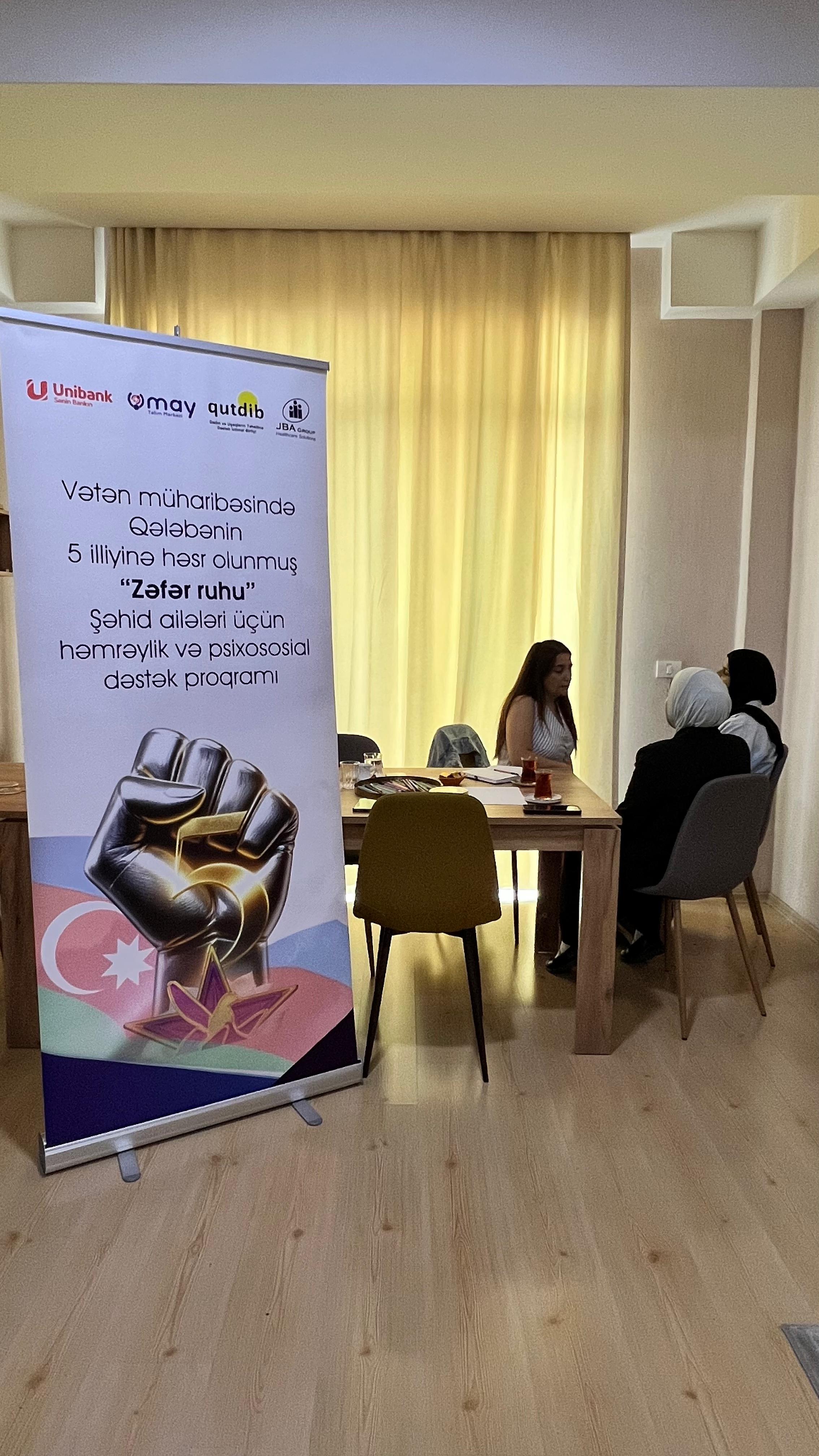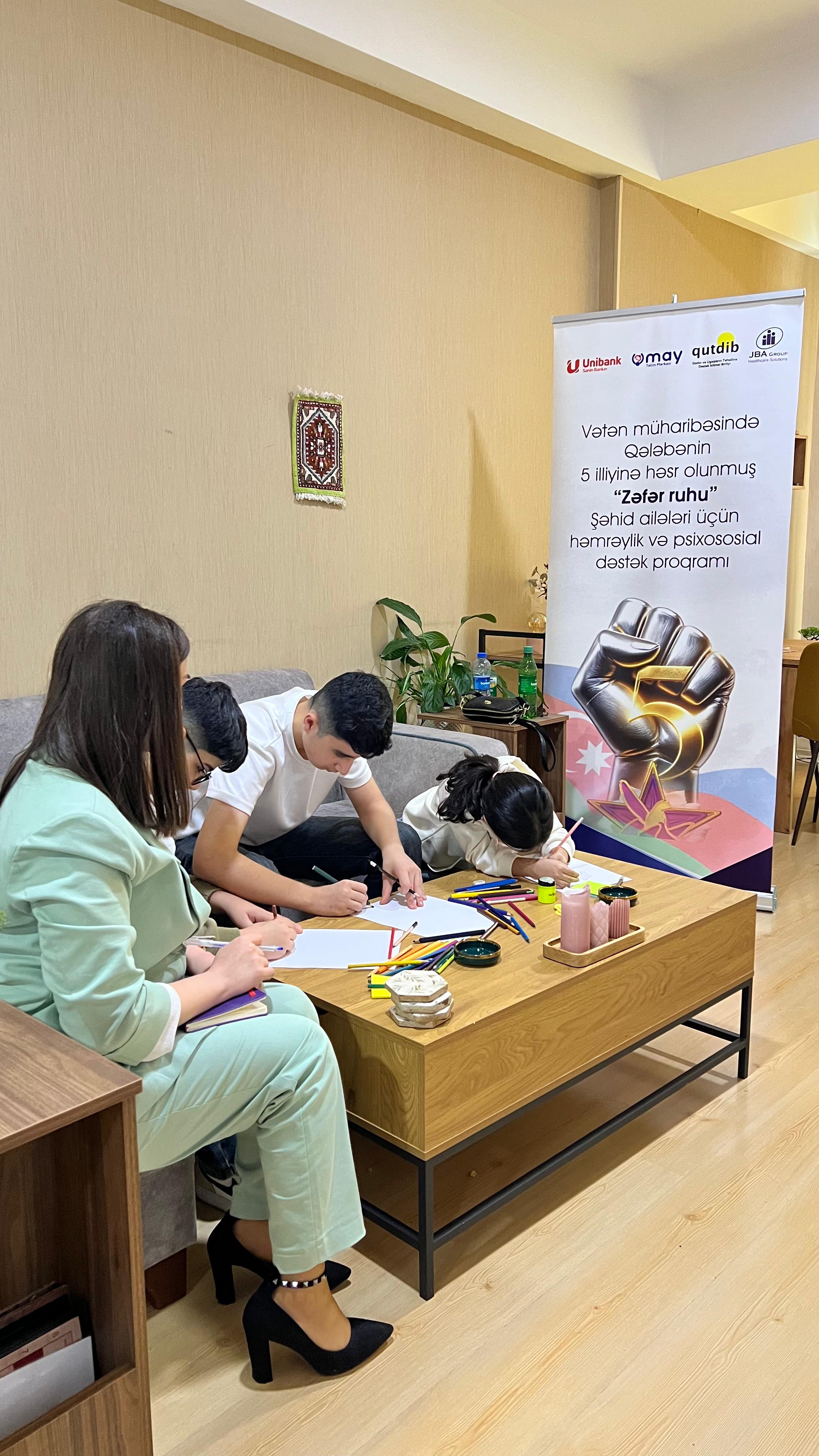 UNİBANK'ın baş sponsorluğu, JBA Qrupun sponsorluğu ilə baş tutan və şəhid ailələrinin psixoloji rifahının və sosial dayanıqlığının gücləndirilməsinə yönəlmiş layihə 8 oktyabr - 8 noyabr tarixlərini əhatə edib. Bu müddət ərzində on beş şəhidin həyat yoldaşları və övladları ilə fərdi psixoloji seanslar, eləcə də qrup terapiyaları yerinə yetirilib. Eyni zamanda, şəhid qəhrəmanlarımızın ailələri ziyarət olunub, onlarla dərin mənəvi-psixoloji söhbətlər aparılıb, eləcə də ev mühitinə uyğunlaşdırılmış terapiya və meditasiya seansları həyata keçirilib.